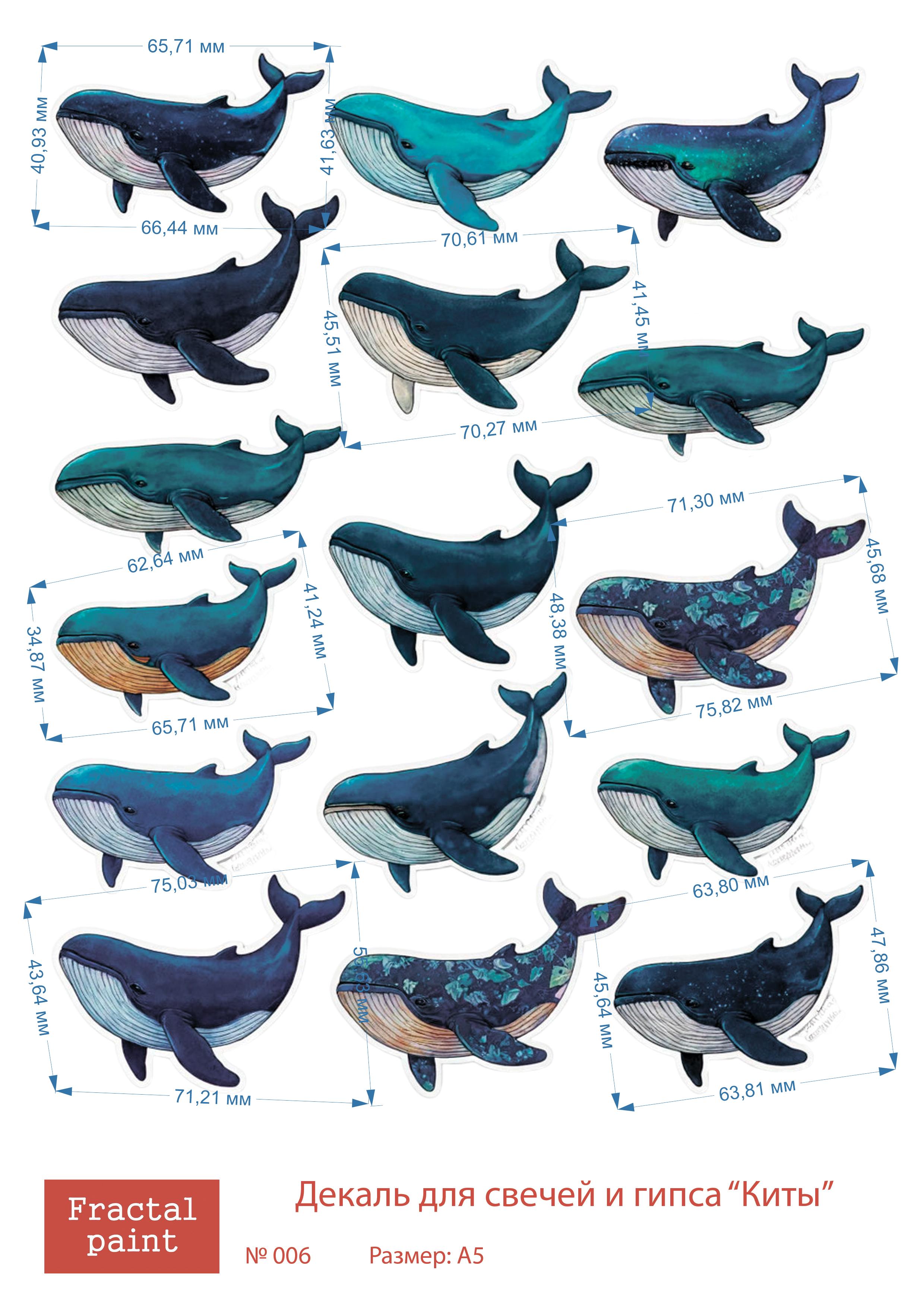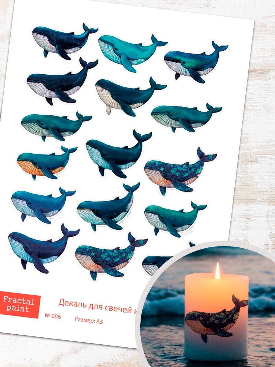 Трансфер переводной - декаль для свечей и гипса киты 006 А5