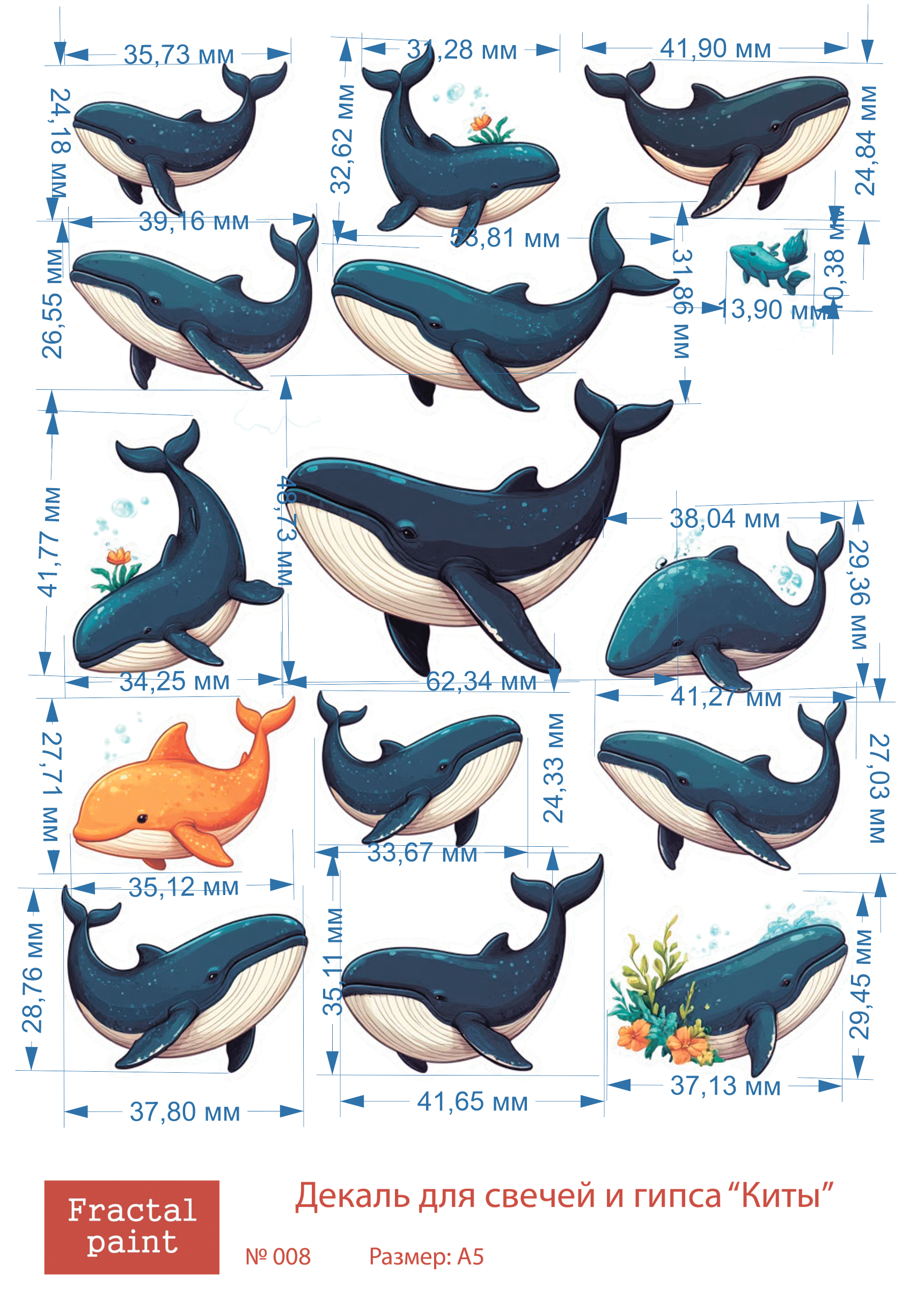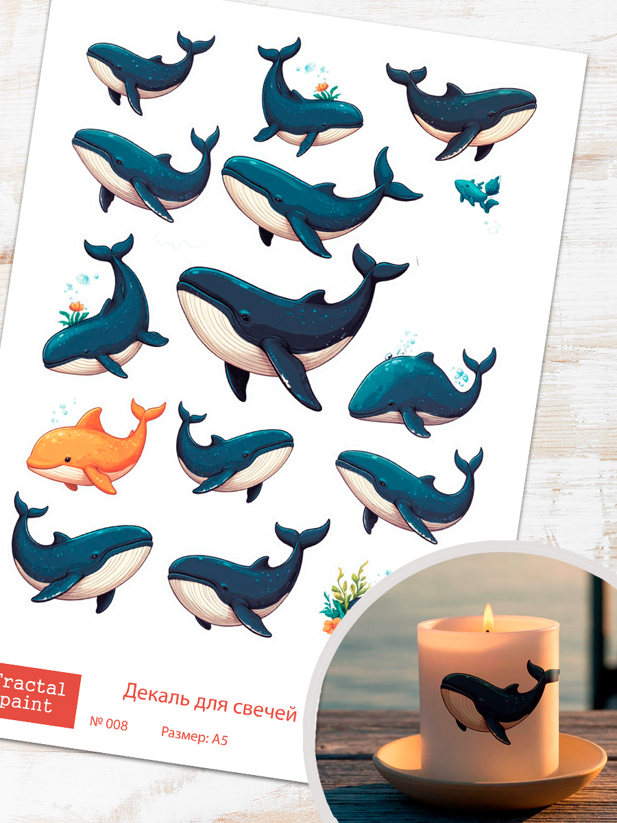 Трансфер переводной - декаль для свечей и гипса киты 008 А5