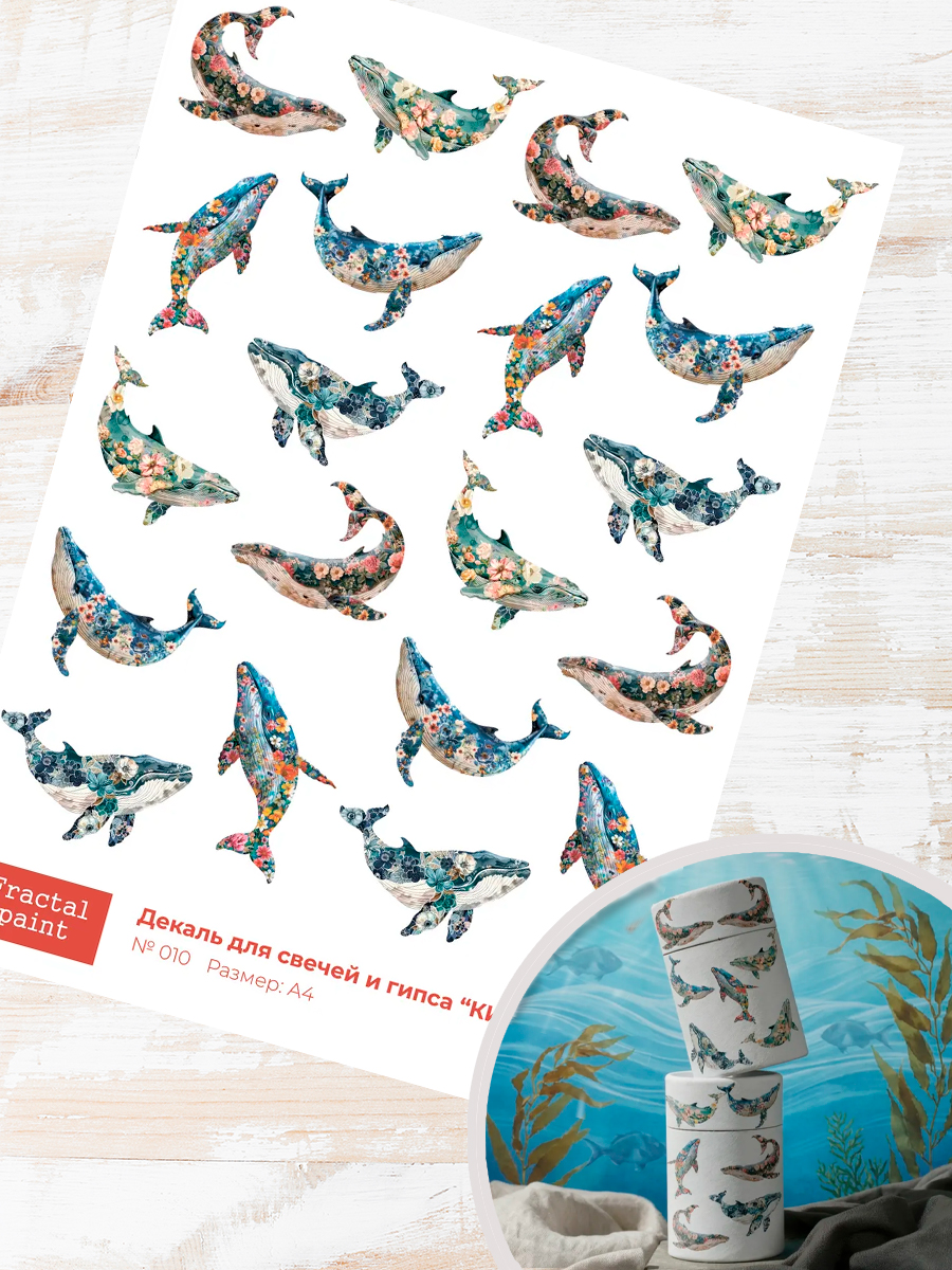 Трансфер переводной - декаль для свечей и гипса киты 010