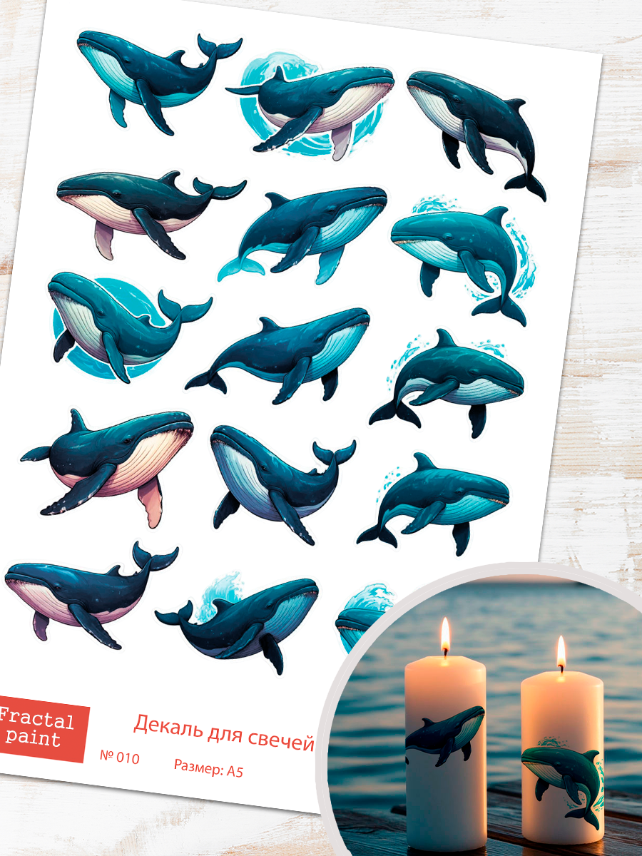 Трансфер переводной - декаль для свечей и гипса киты 010 А5