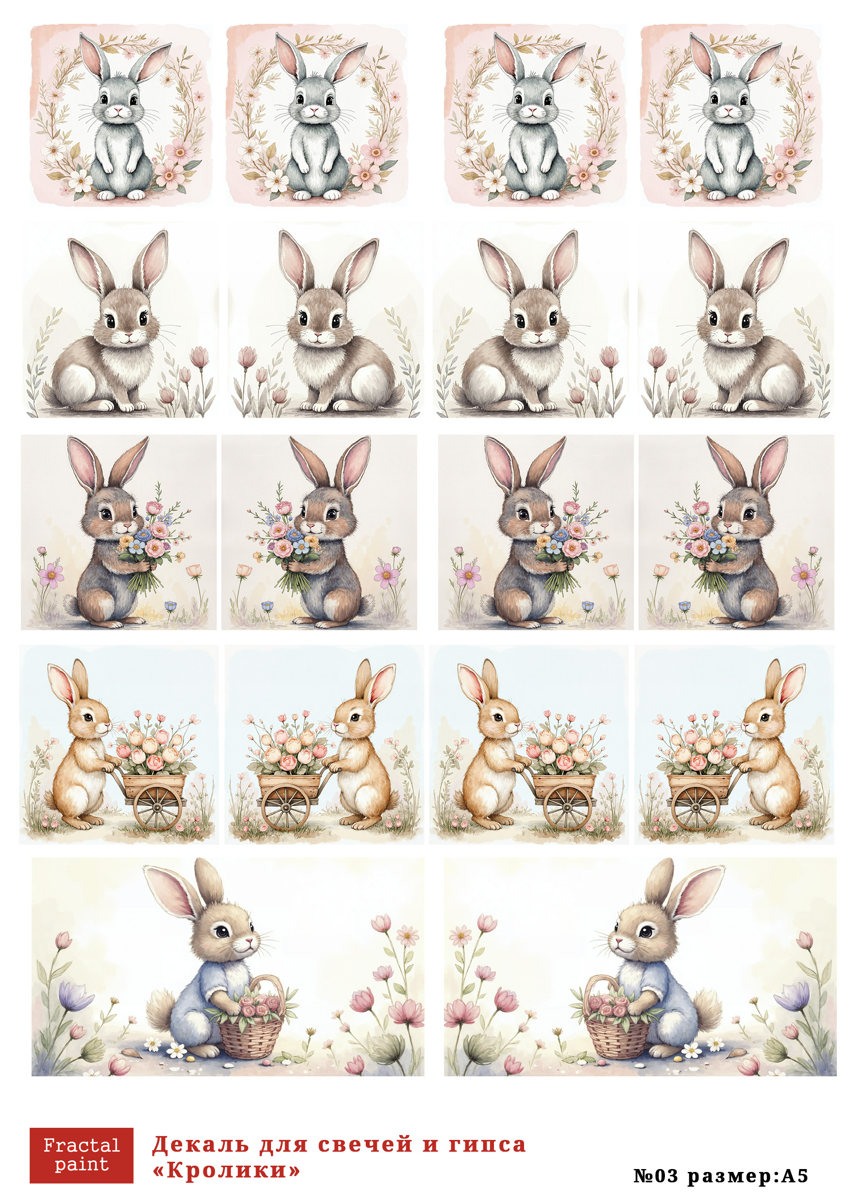 Трансфер переводной - декаль для свечей и гипса кролики 003 А5