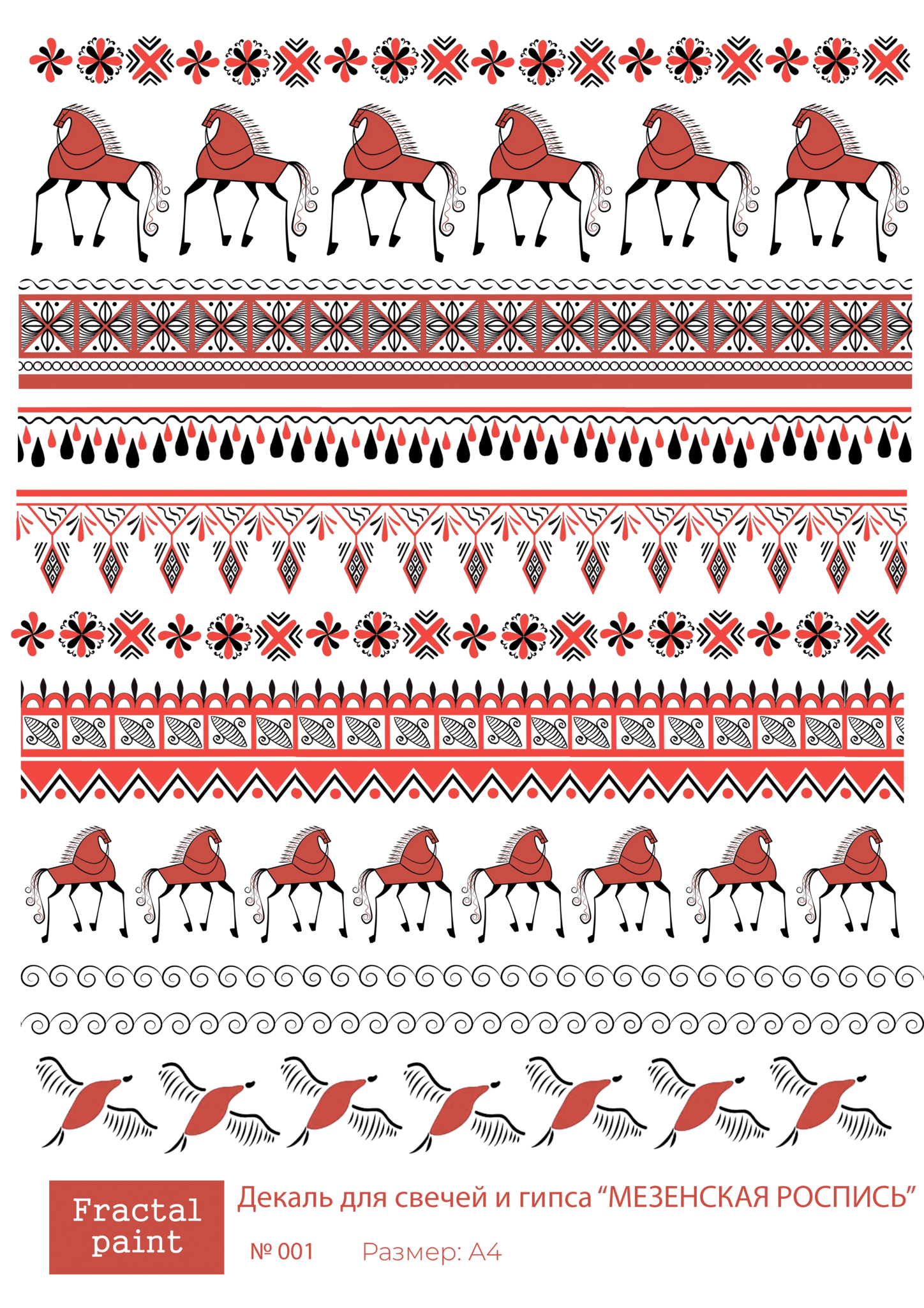 Трансфер переводной - декаль для свечей и гипса мезенская роспись 001