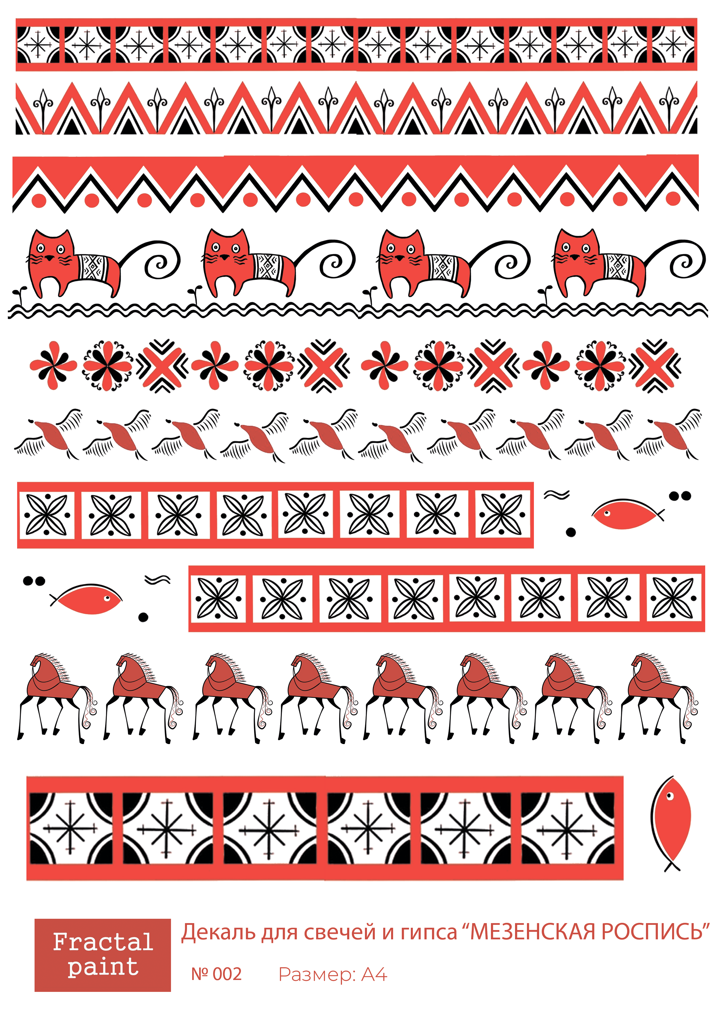Трансфер переводной - декаль для свечей и гипса мезенская роспись 002
