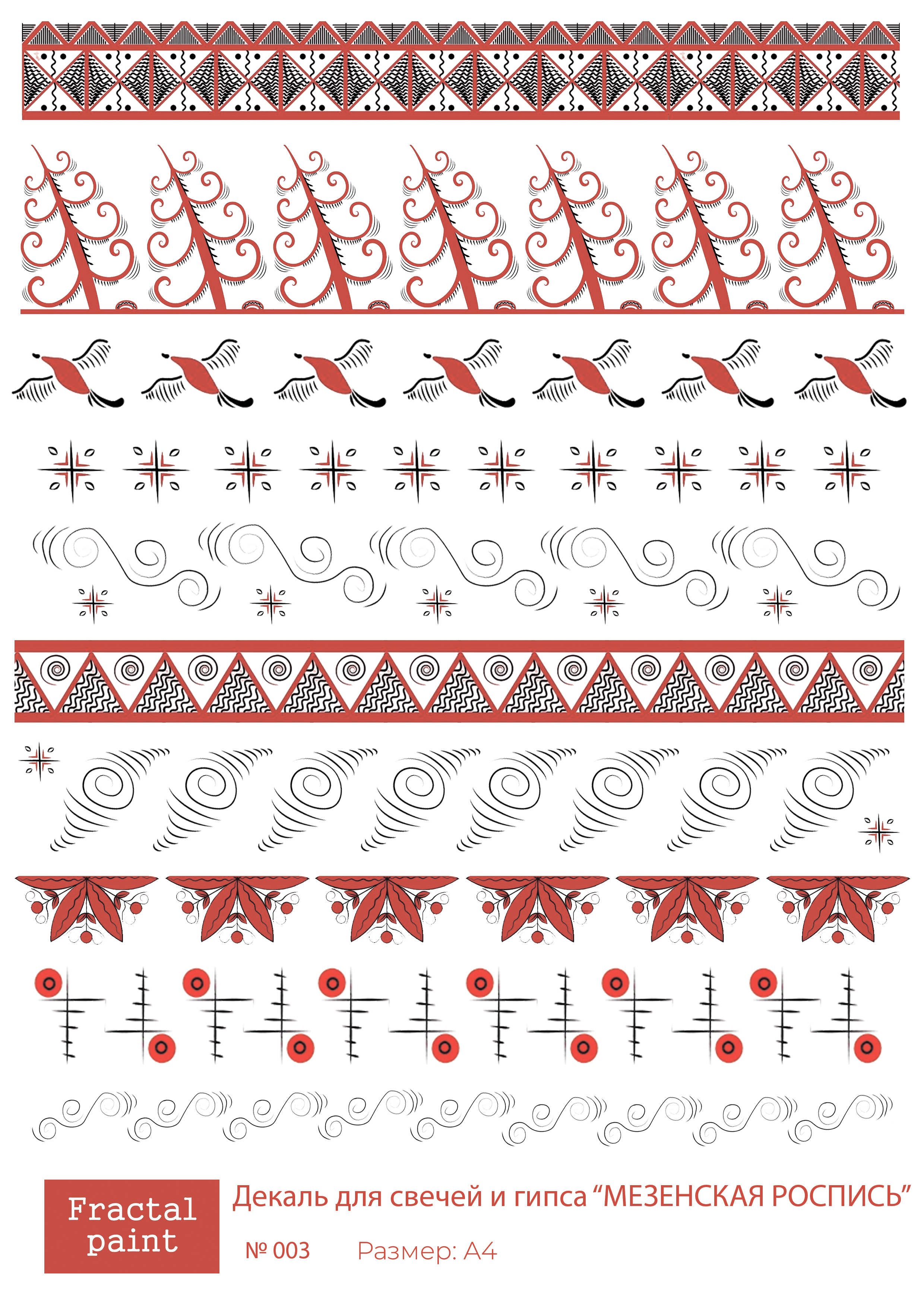 Трансфер переводной - декаль для свечей и гипса мезенская роспись 003