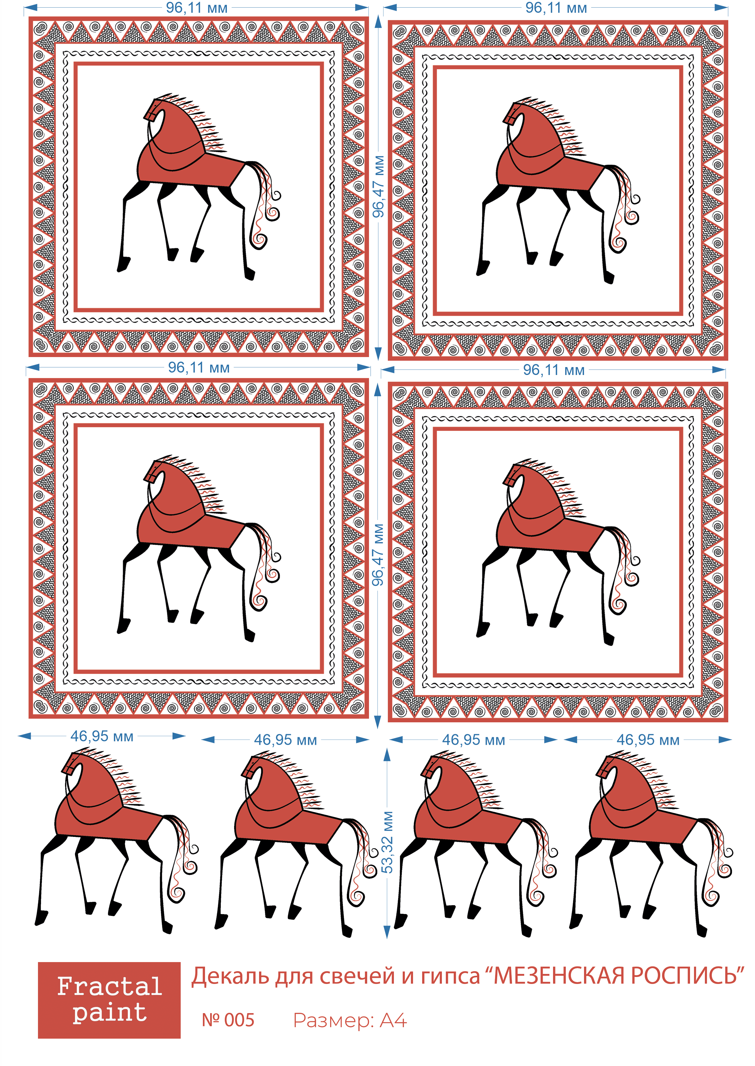 Трансфер переводной - декаль для свечей и гипса мезенская роспись 005
