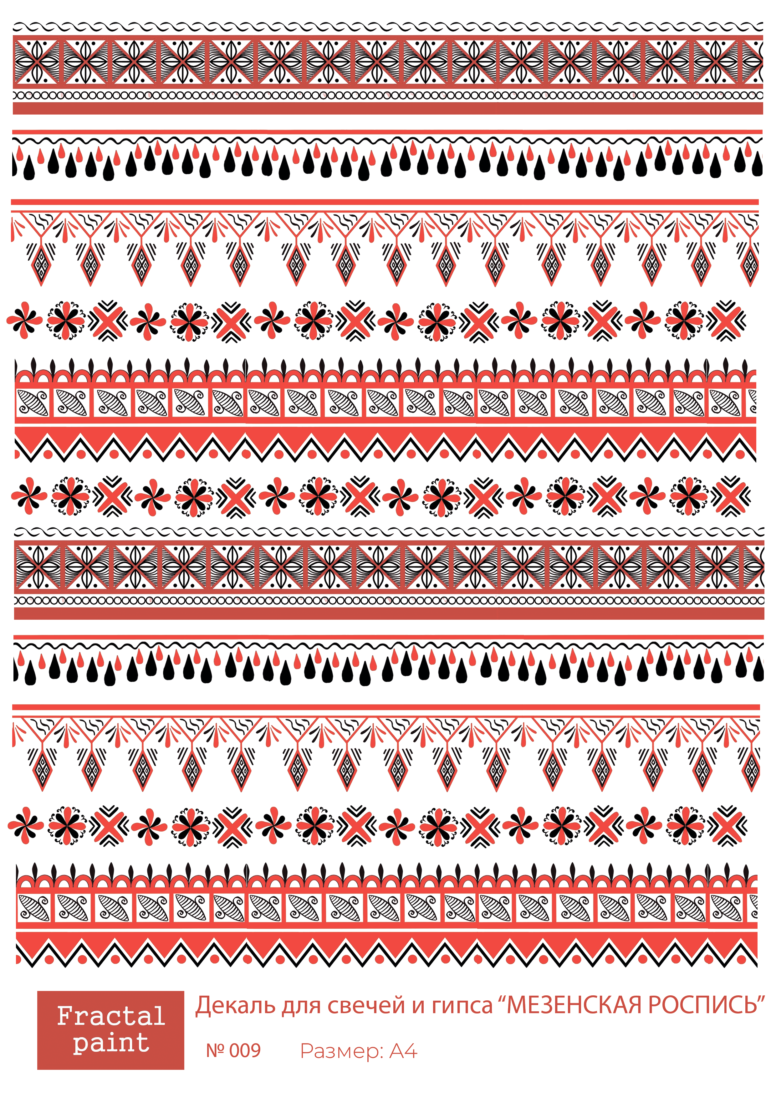 Трансфер переводной - декаль для свечей и гипса мезенская роспись 009