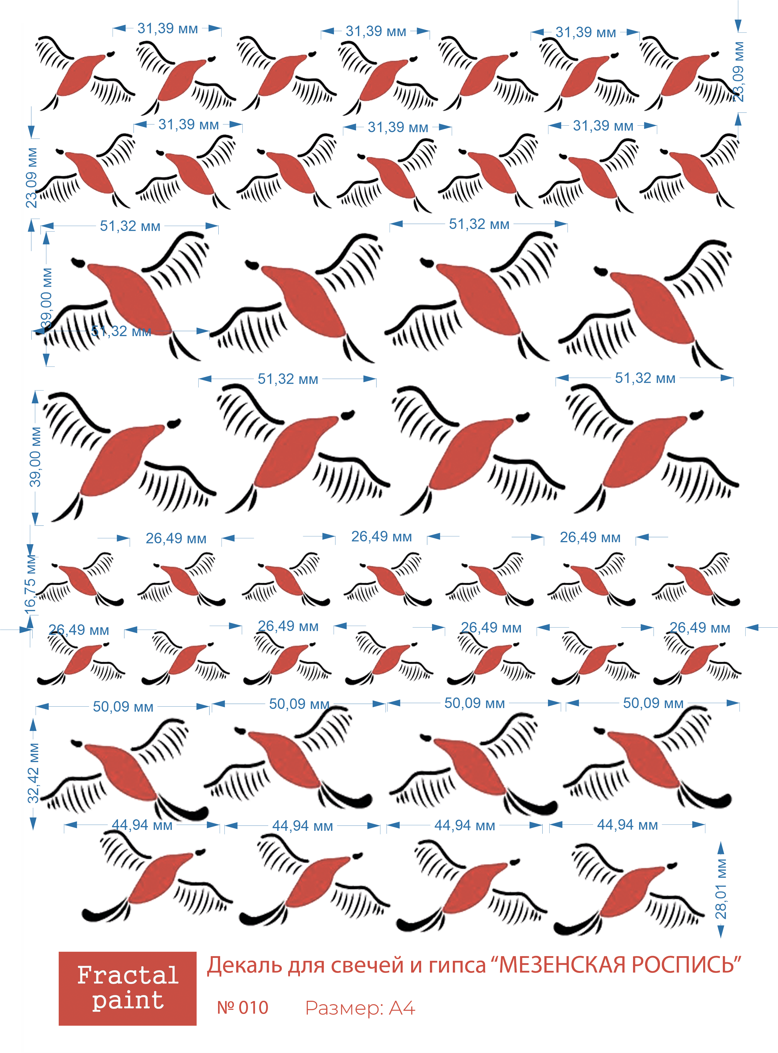 Трансфер переводной - декаль для свечей и гипса мезенская роспись 010