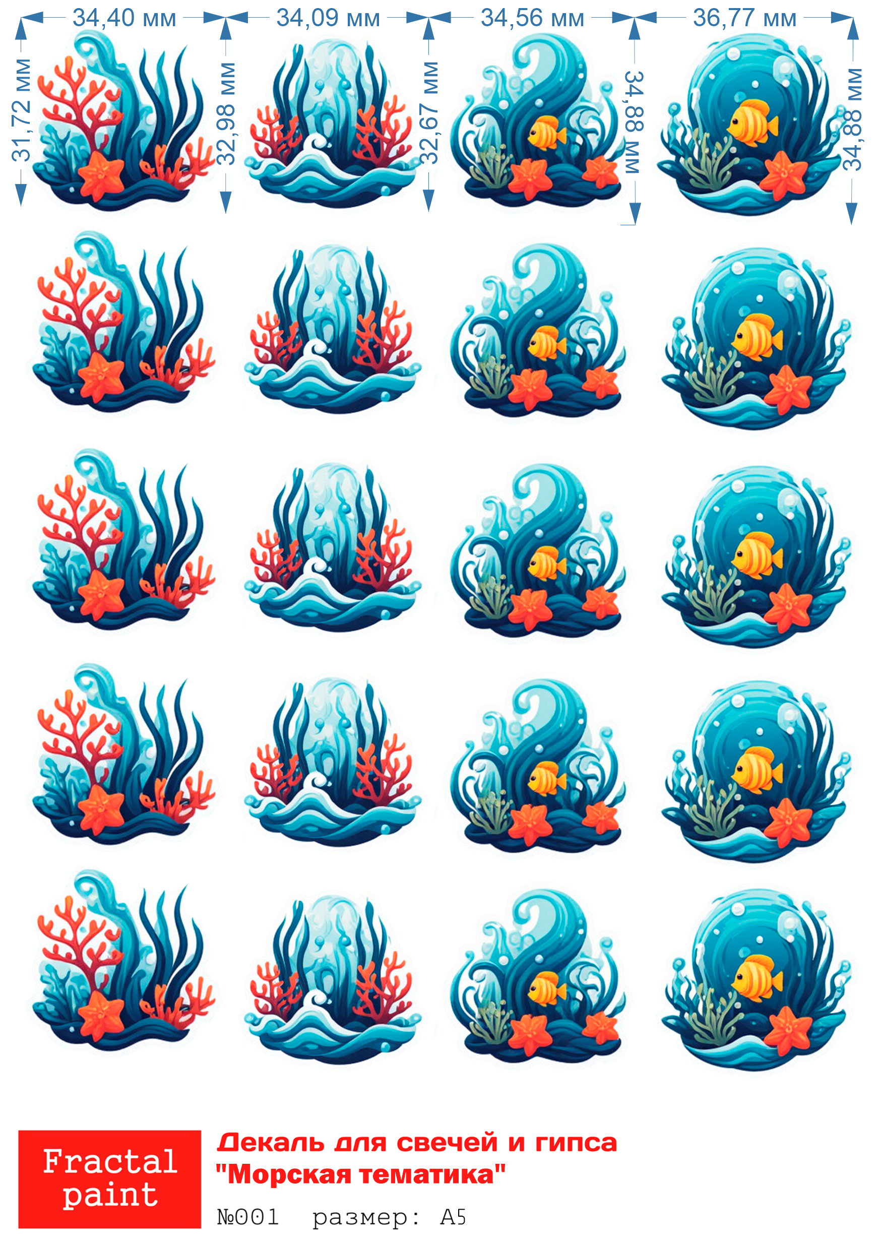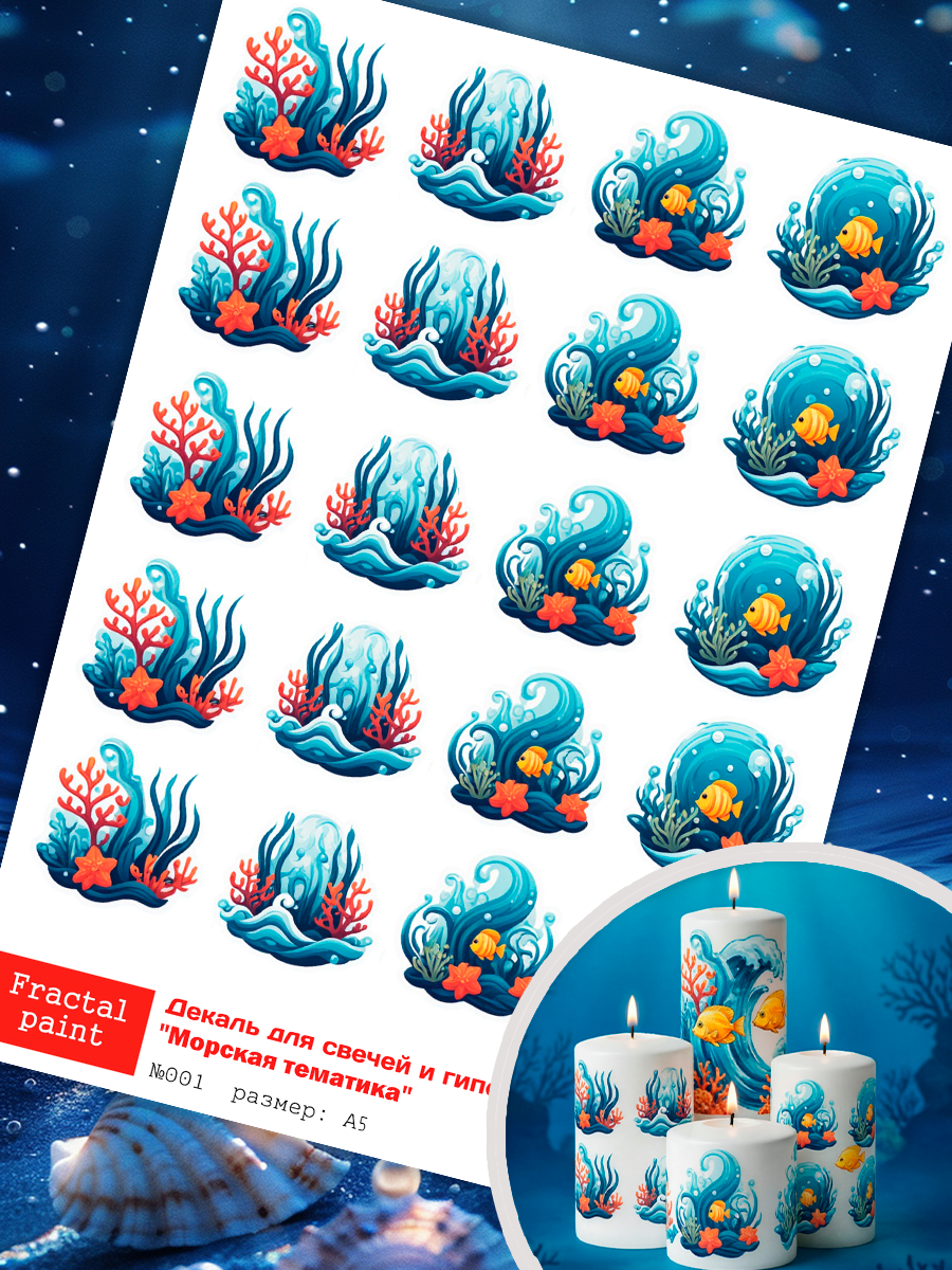 Трансфер переводной - декаль для свечей и гипса морская тематика 001 А5