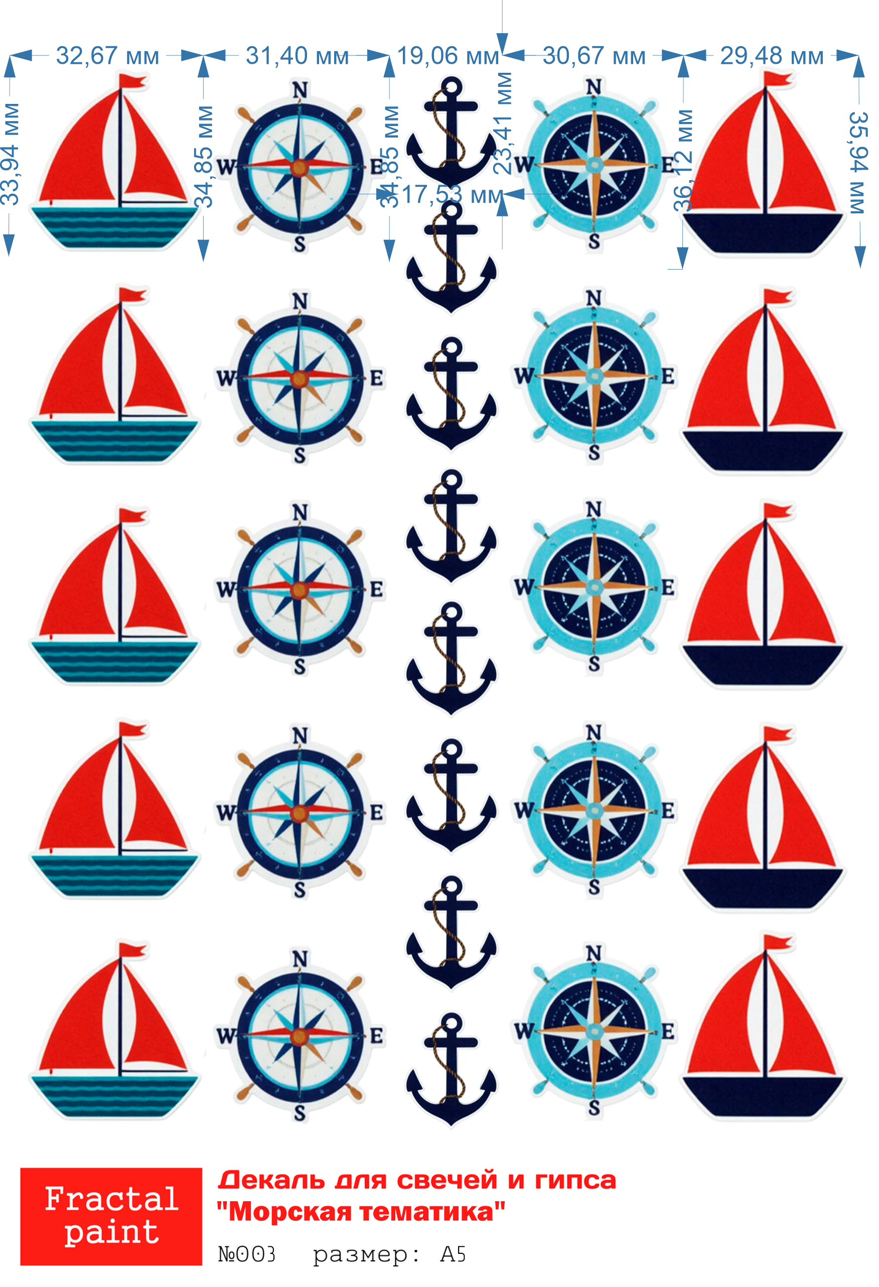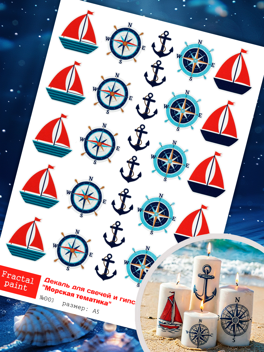 Трансфер переводной - декаль для свечей и гипса морская тематика 003 А5