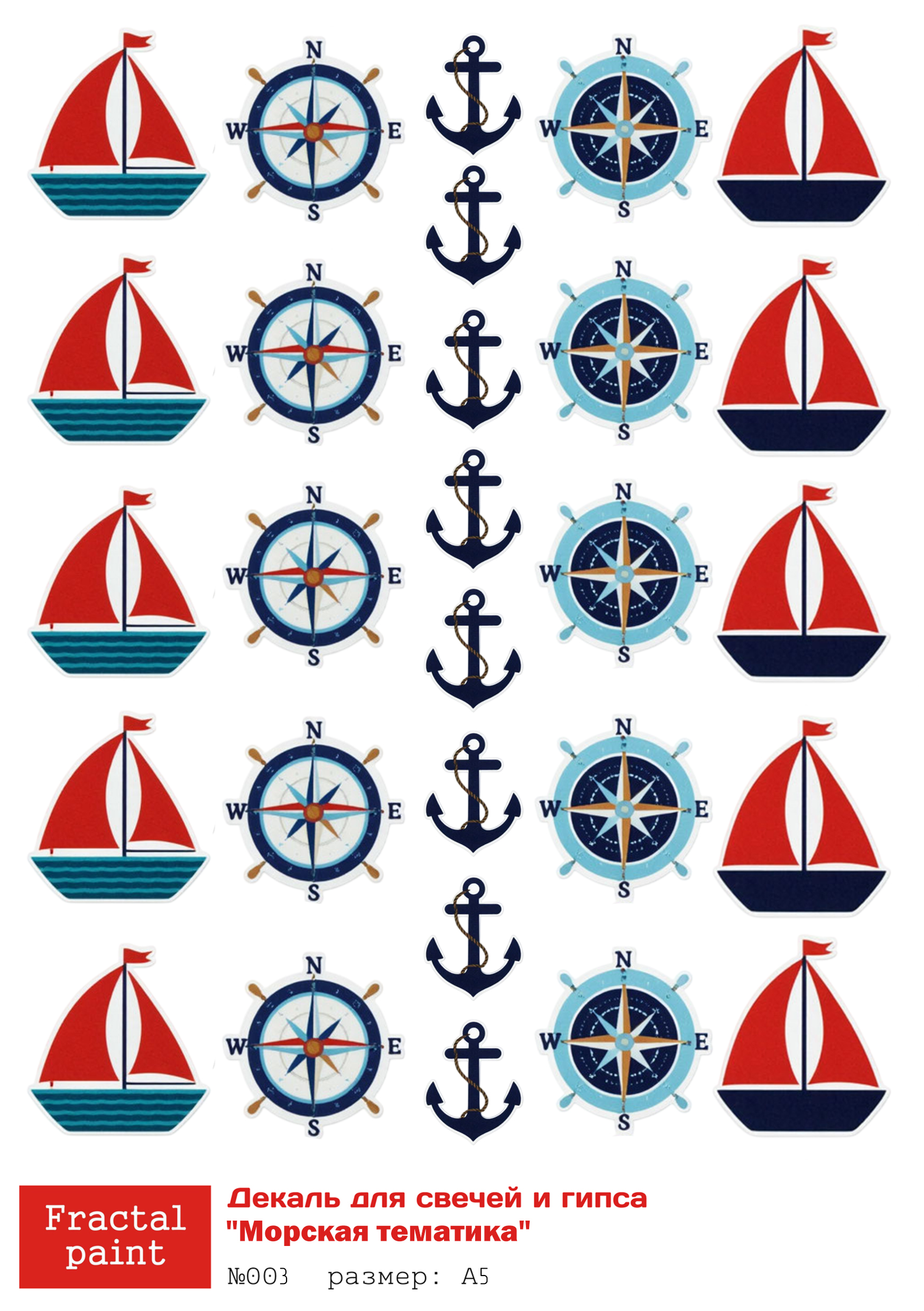 Трансфер переводной - декаль для свечей и гипса морская тема 003 А5