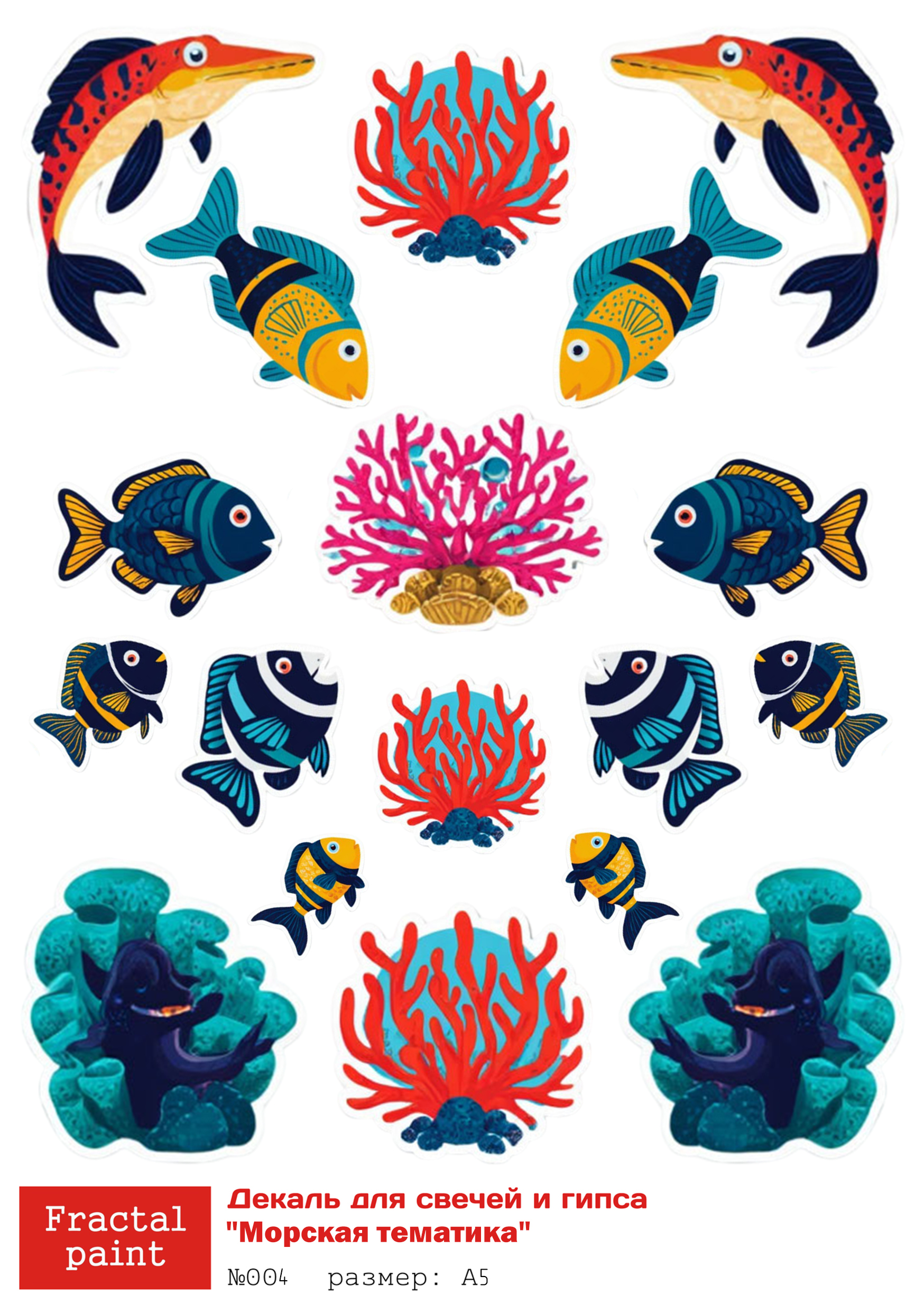 Трансфер переводной - декаль для свечей и гипса морская тематика 004 А5