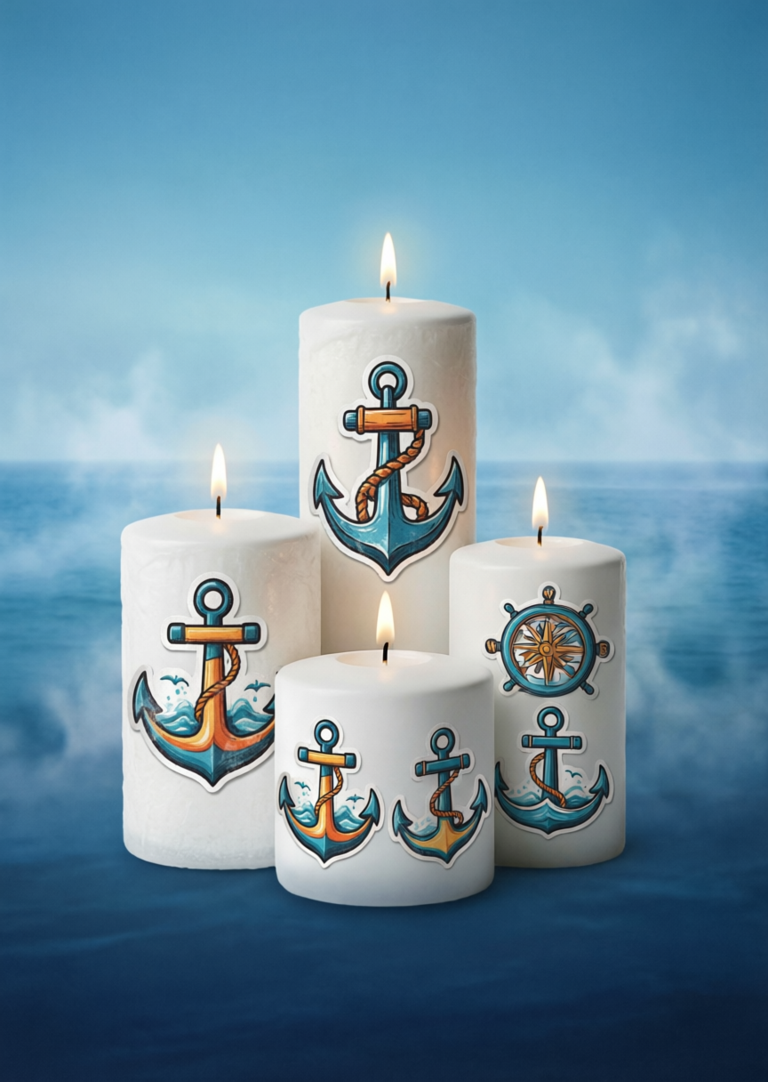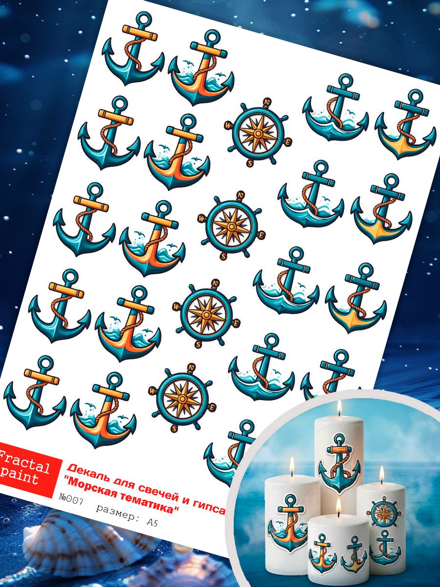 Трансфер переводной - декаль для свечей и гипса морская тематика 007 А5