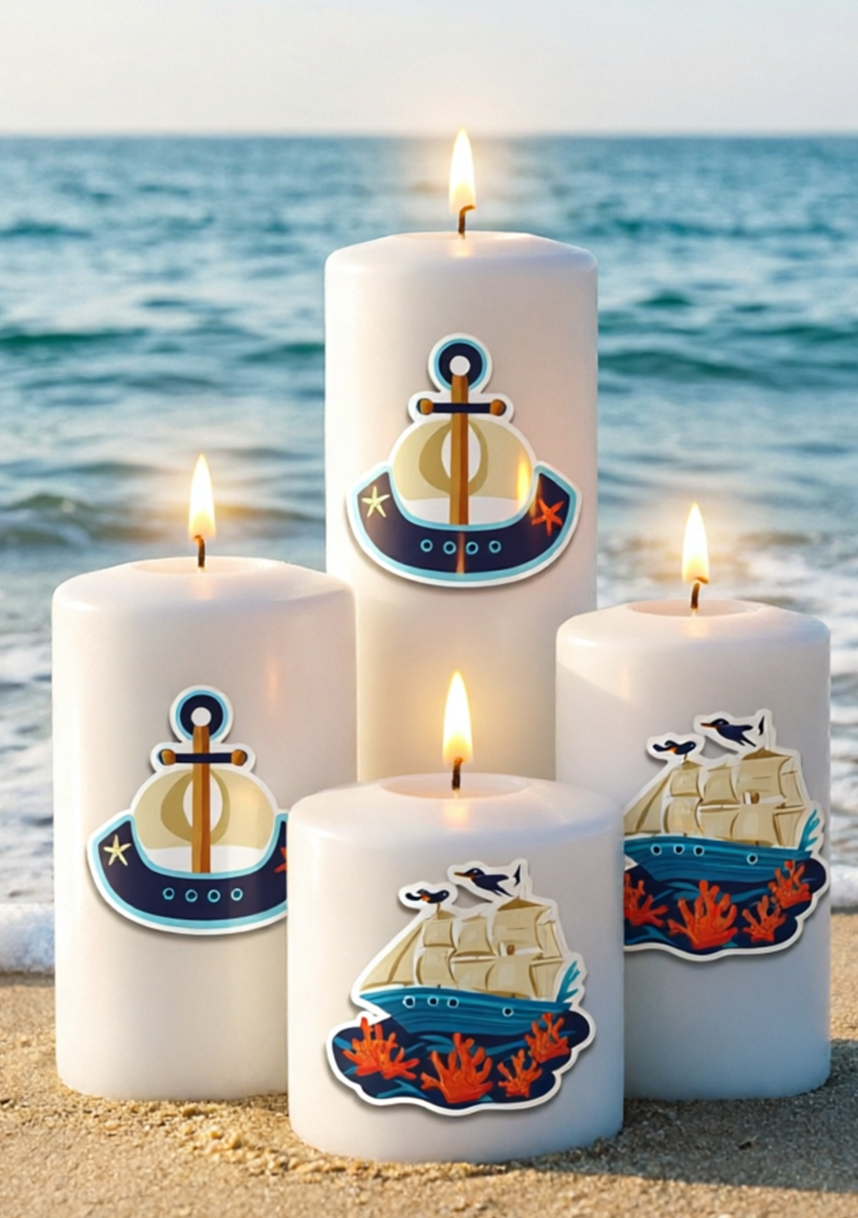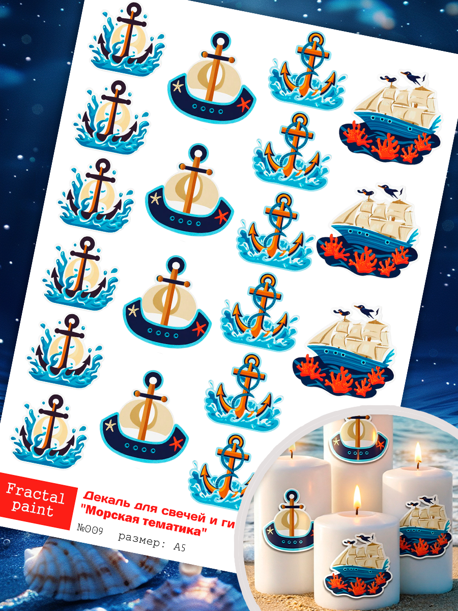 Трансфер переводной - декаль для свечей и гипса морская тематика 009 А5