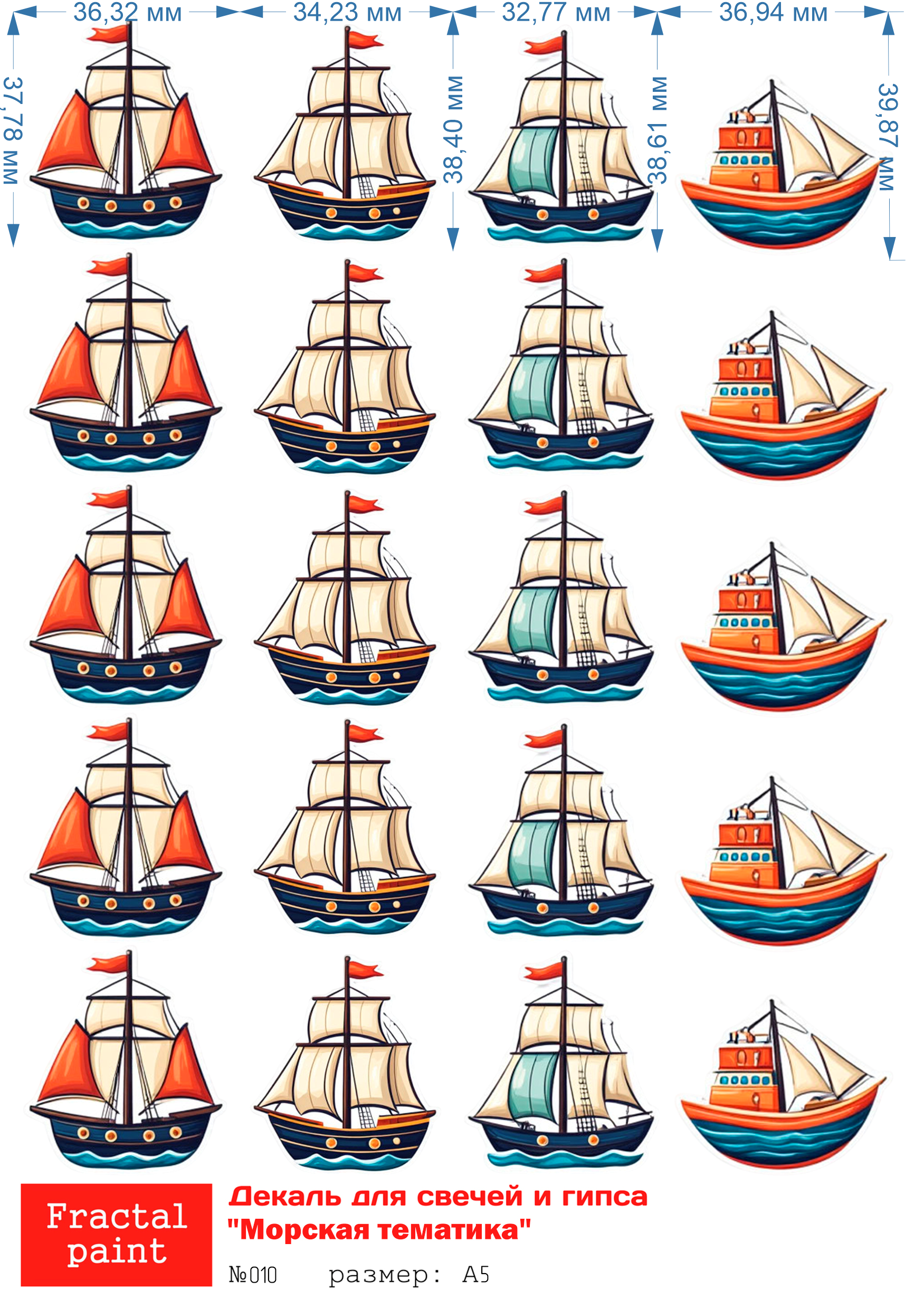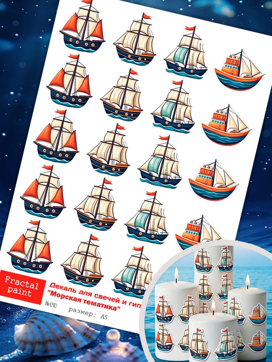 Трансфер переводной - декаль для свечей и гипса морская тематика 010 А5