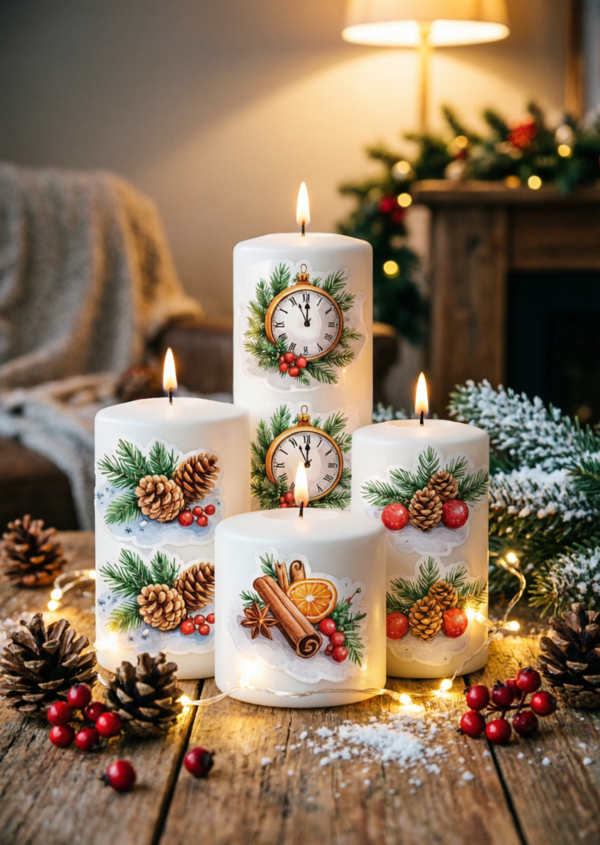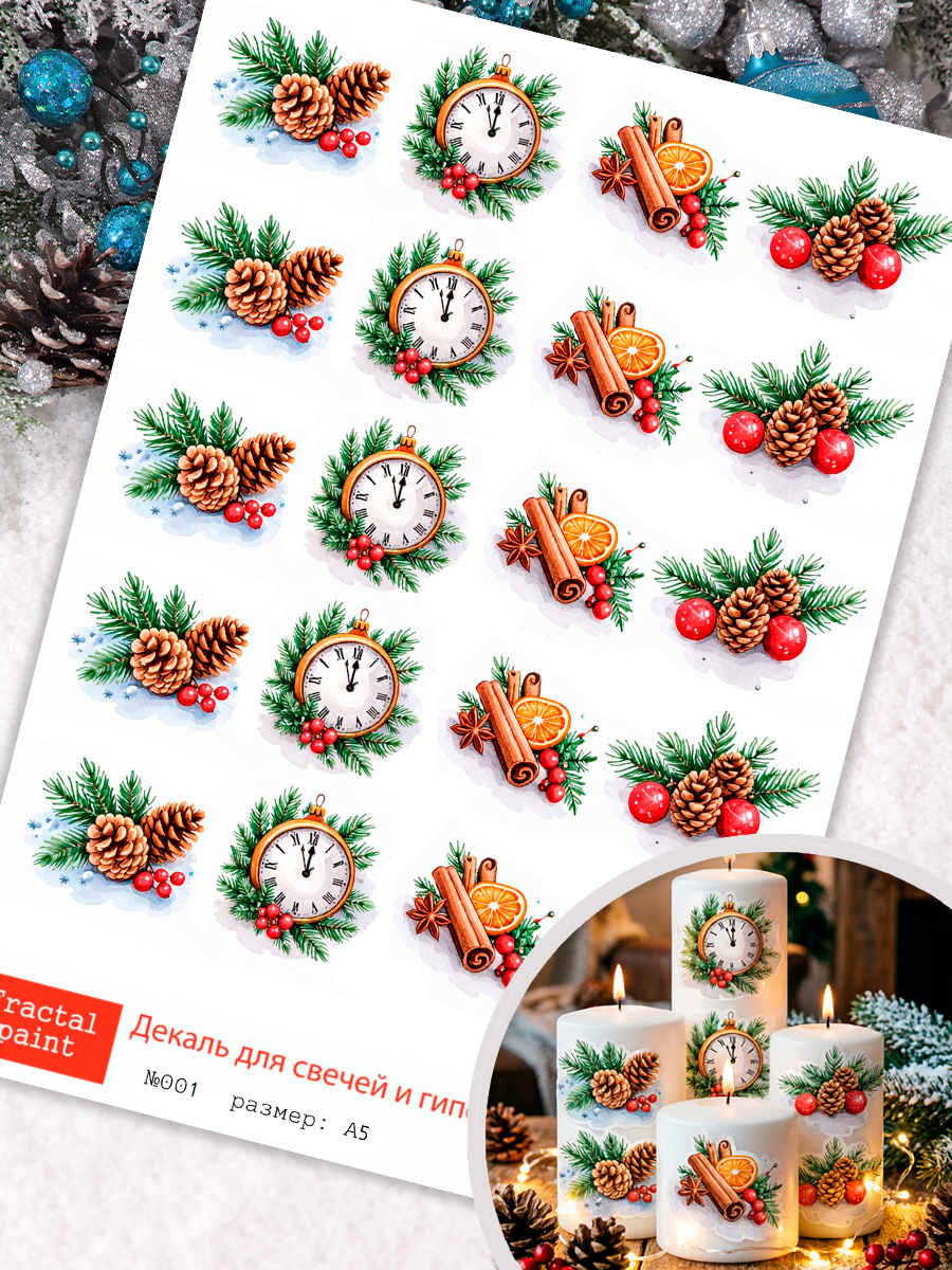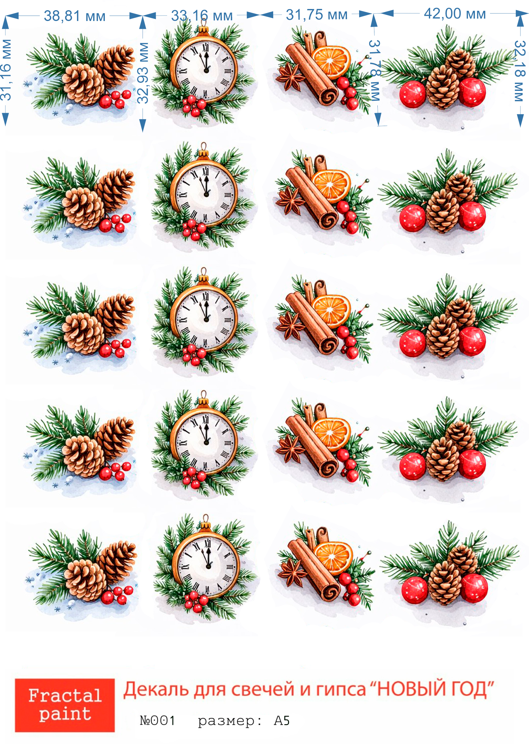 Трансфер переводной - декаль для свечей и гипса новый год 001 А5