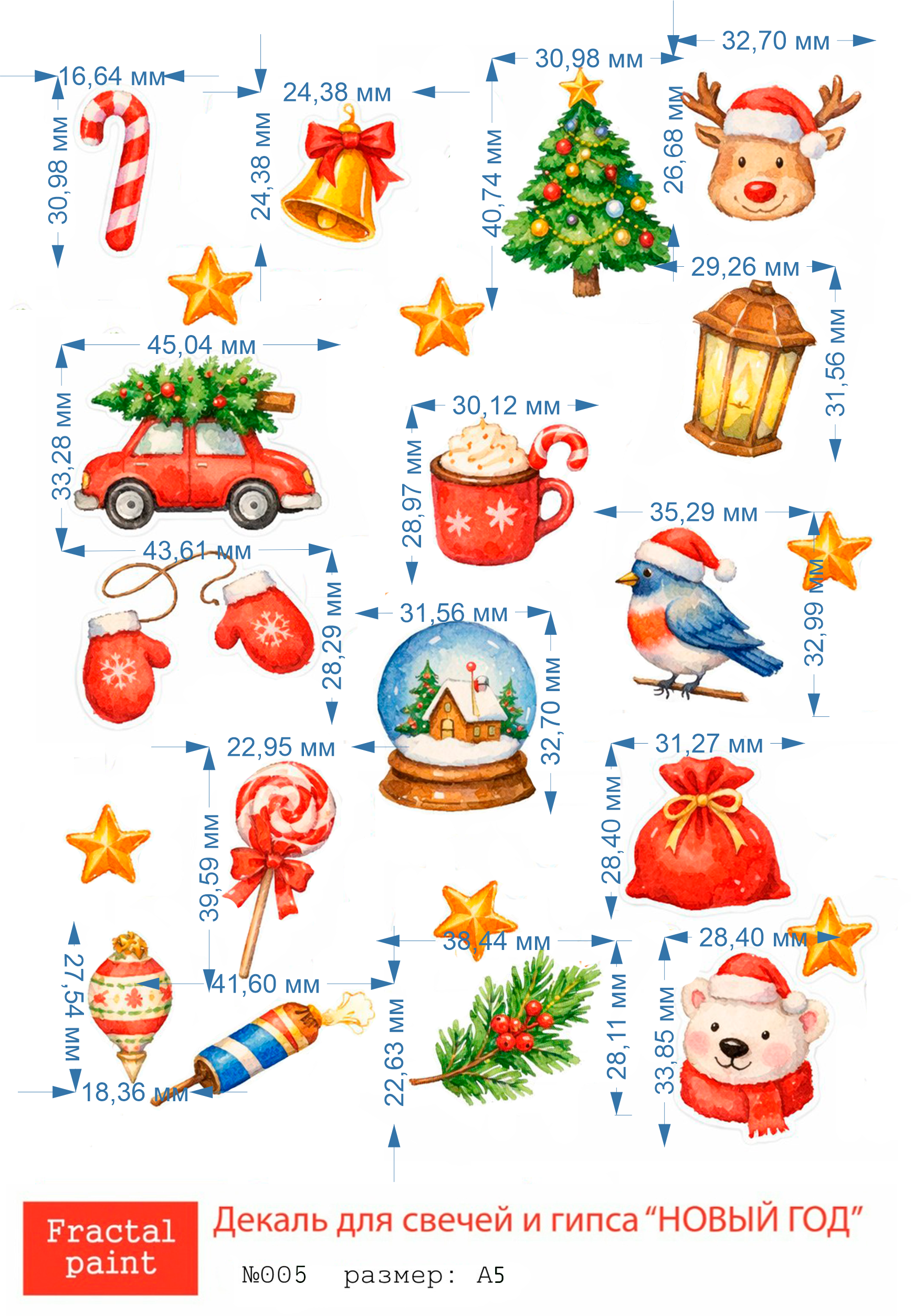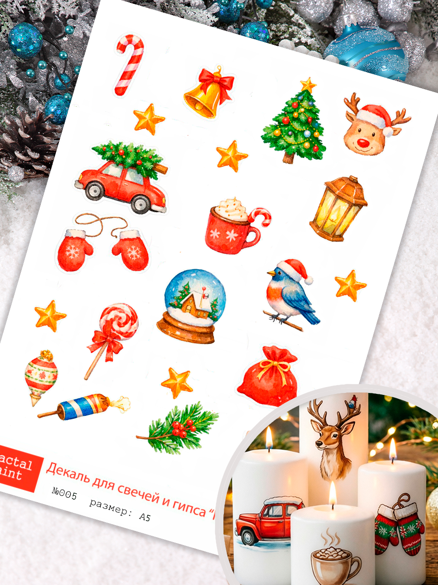Трансфер переводной - декаль для свечей и гипса новый год 005 А5