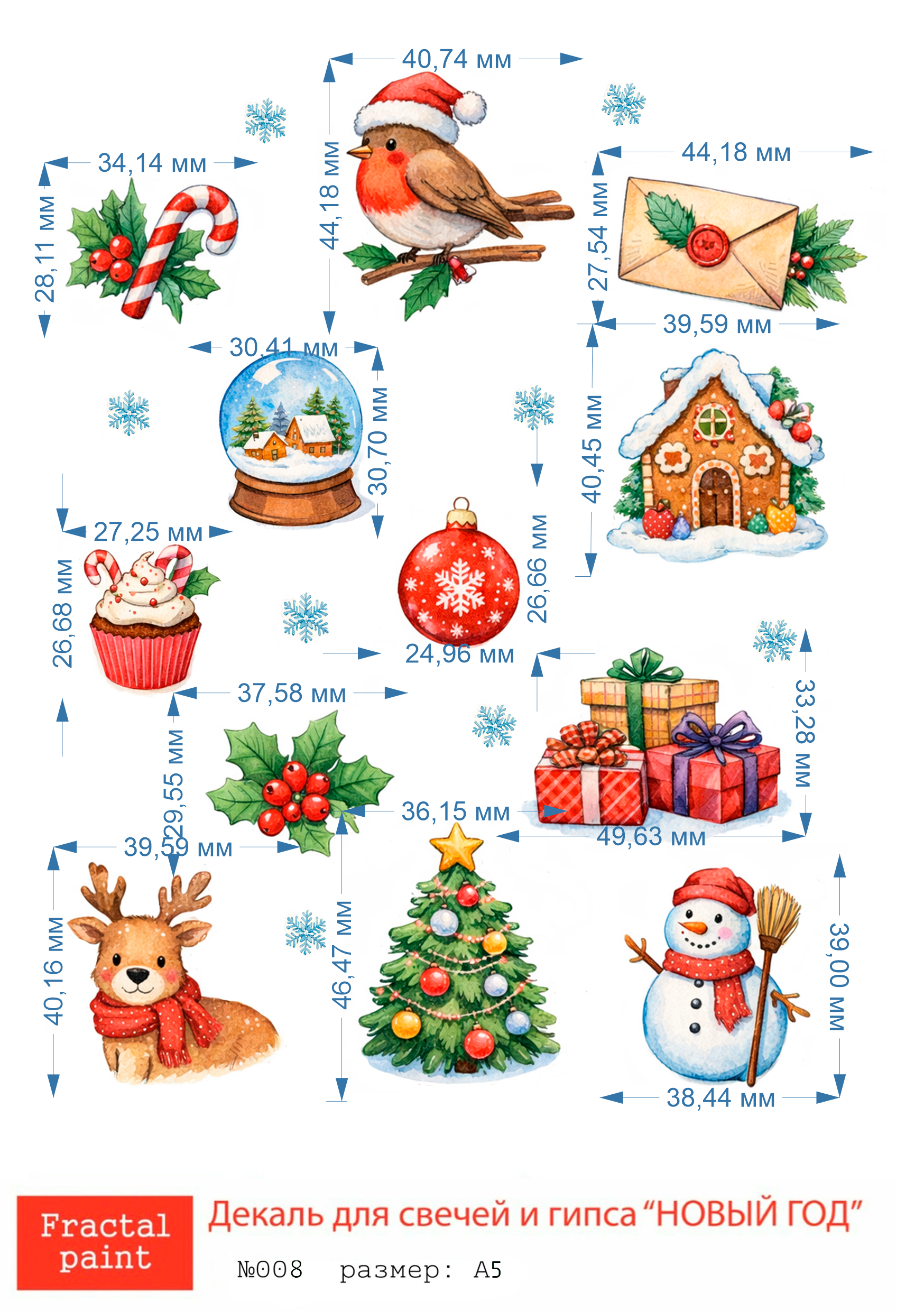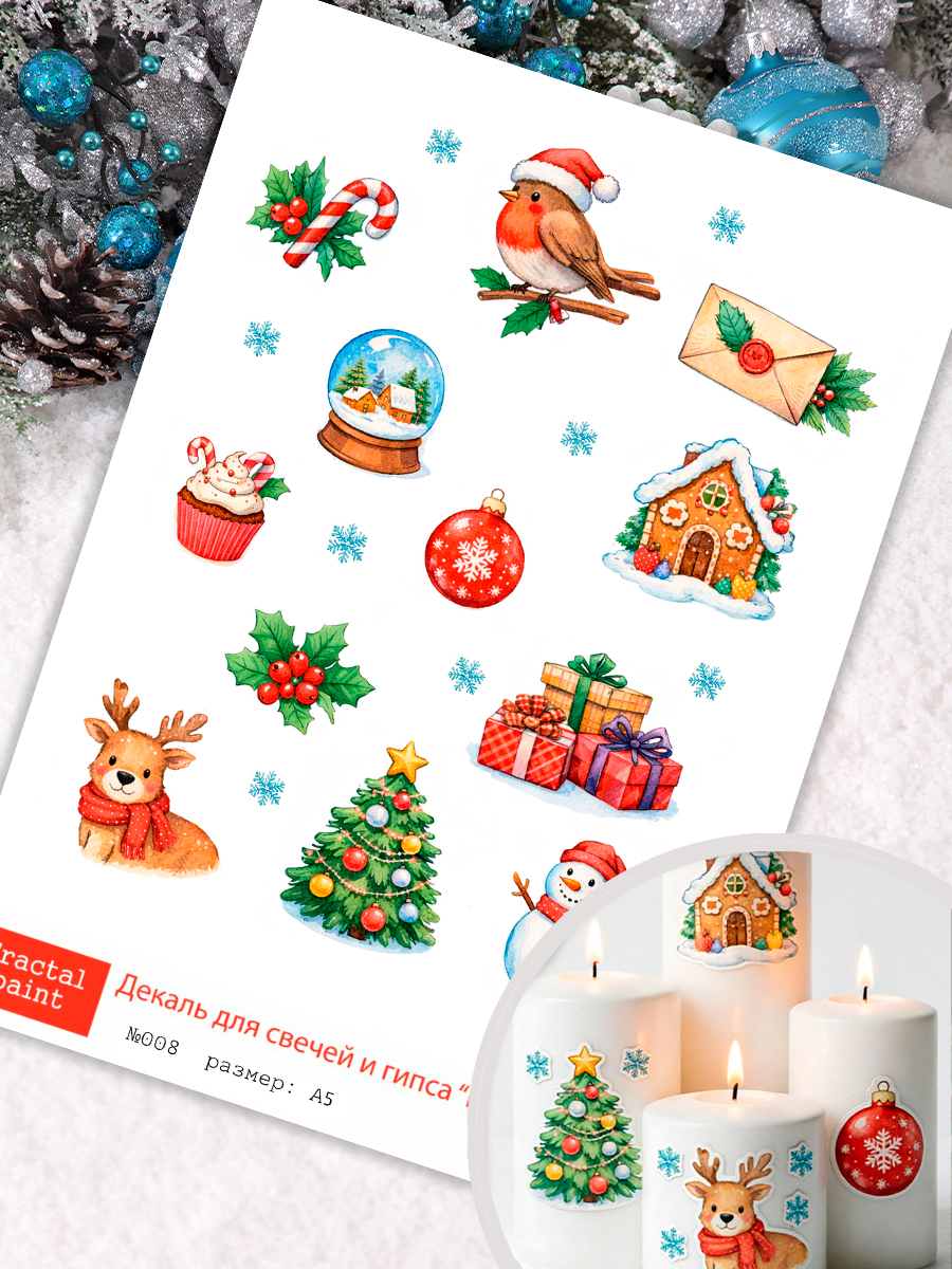 Трансфер переводной - декаль для свечей и гипса новый год 008 А5