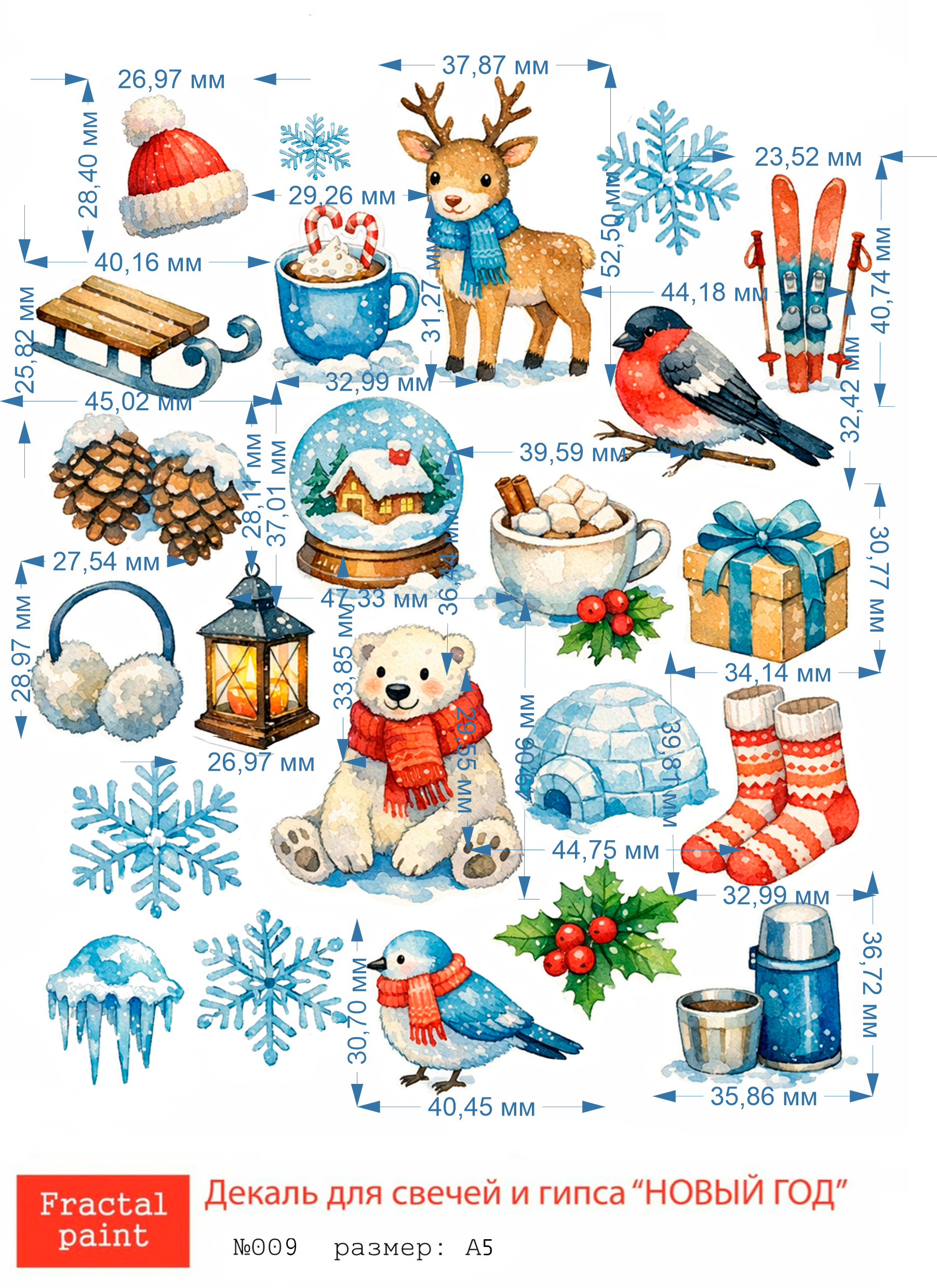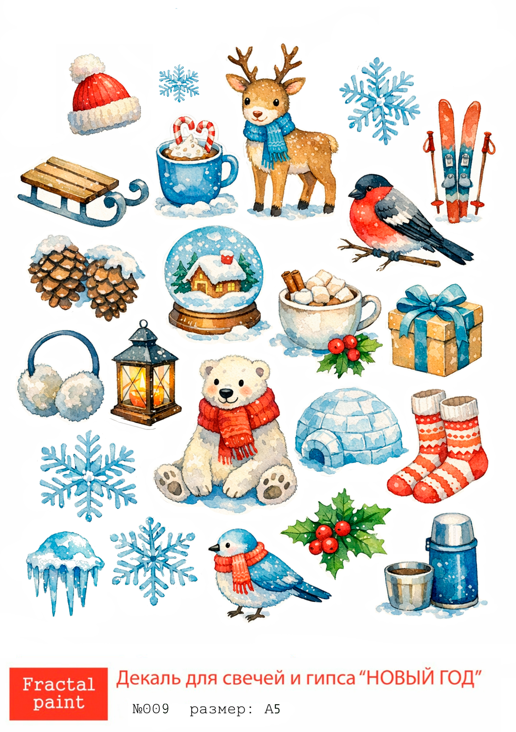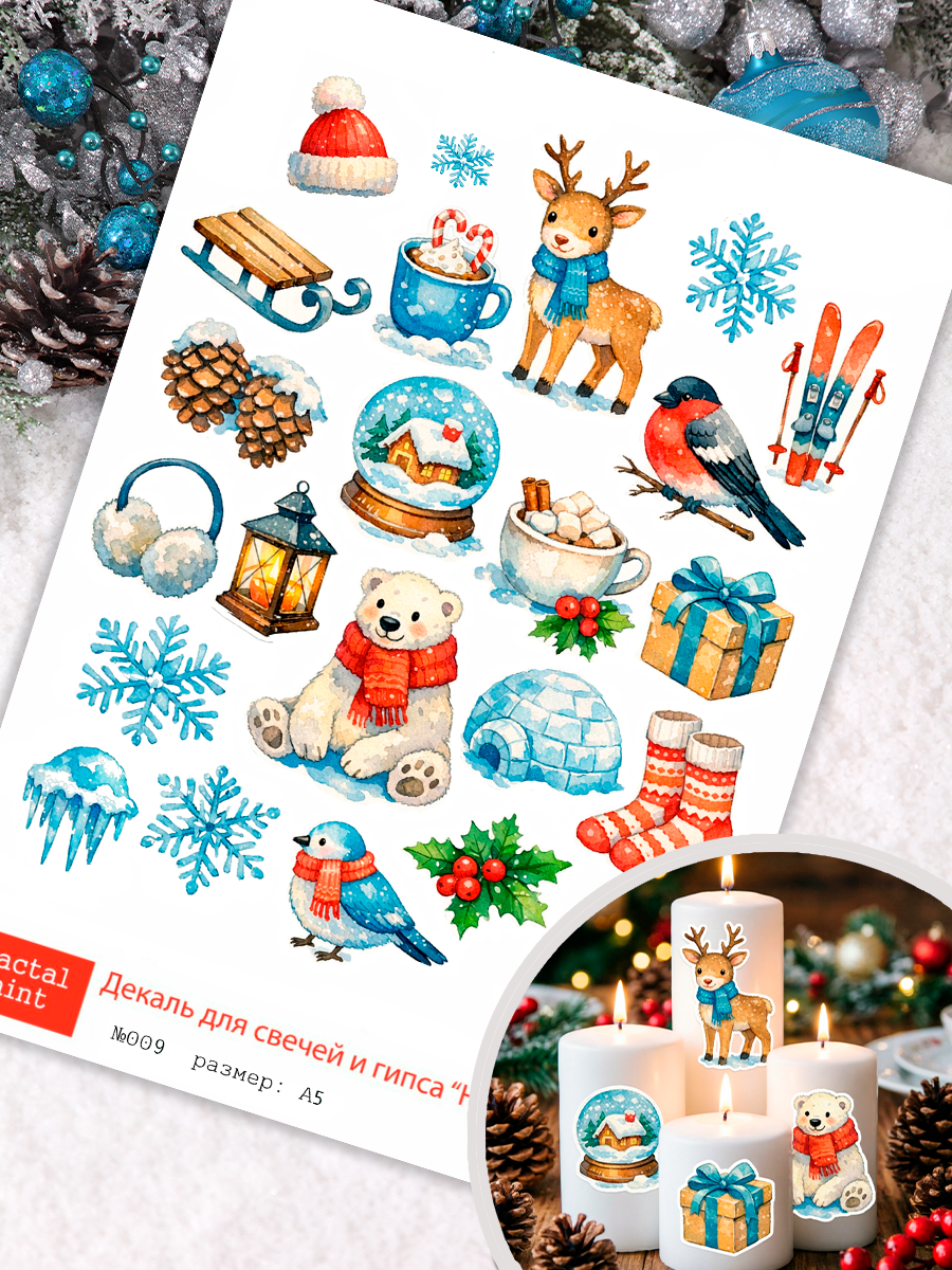 Трансфер переводной - декаль для свечей и гипса новый год 009 А5