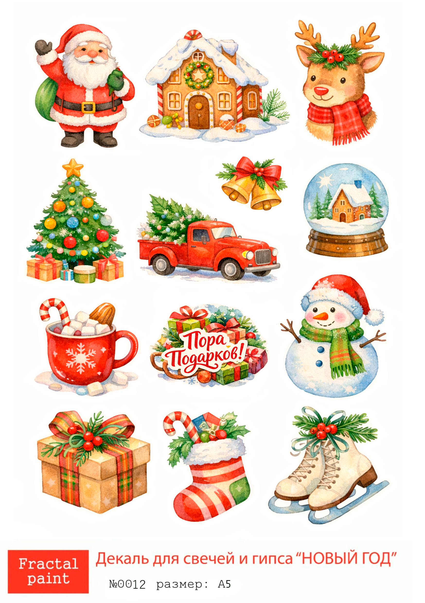 Трансфер переводной - декаль для свечей и гипса новый год 012 А5
