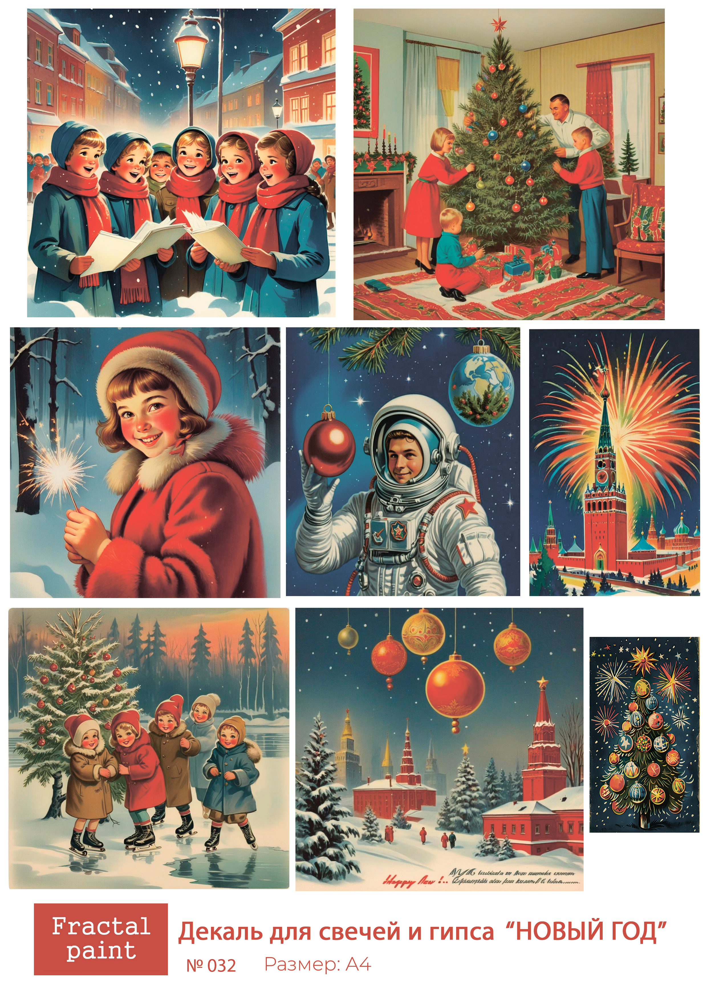 Трансфер переводной - декаль для свечей и гипса новый год 032
