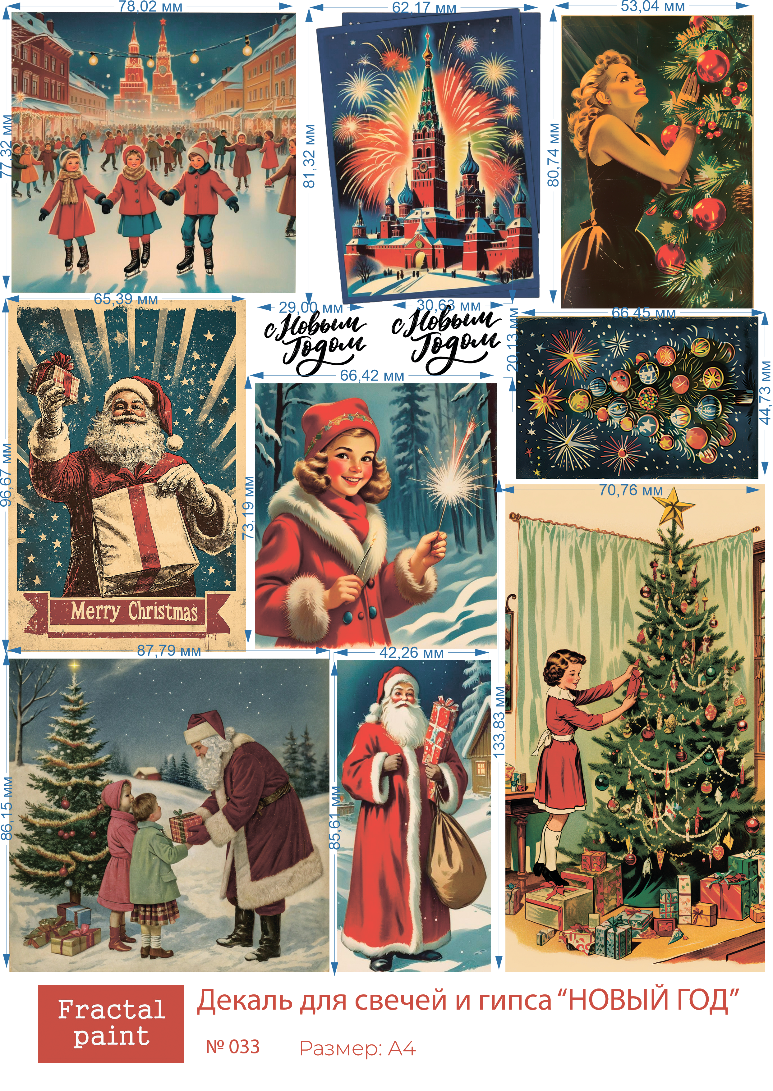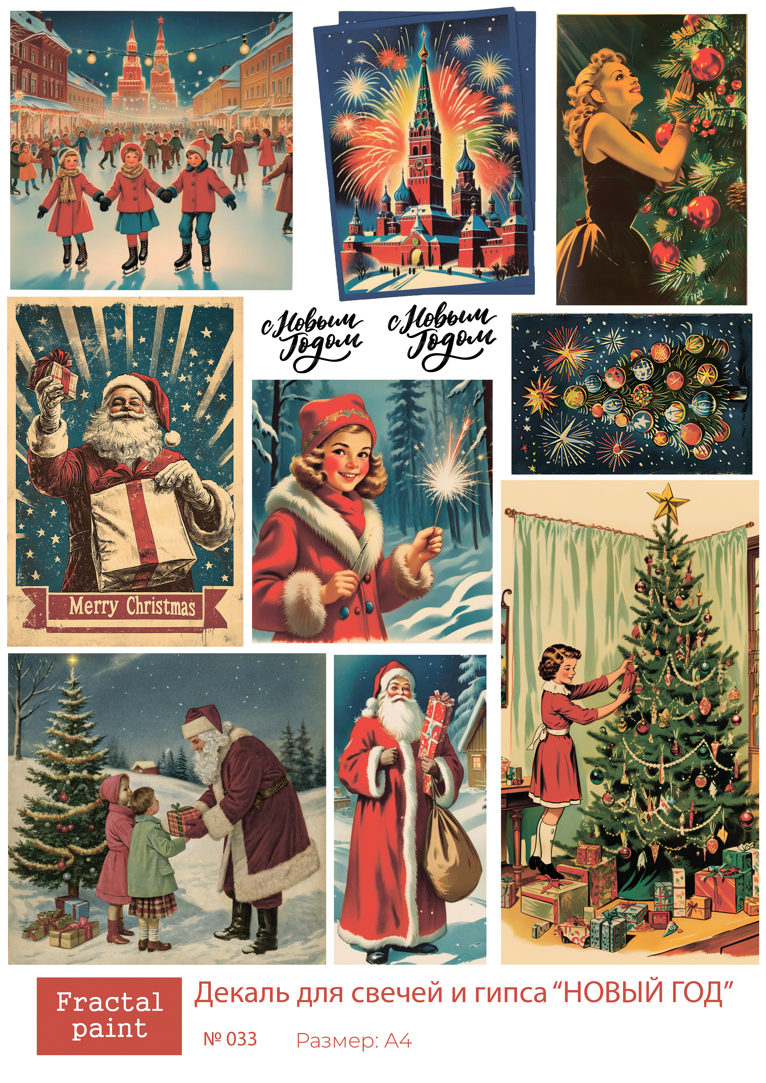 Трансфер переводной - декаль для свечей и гипса новый год 033