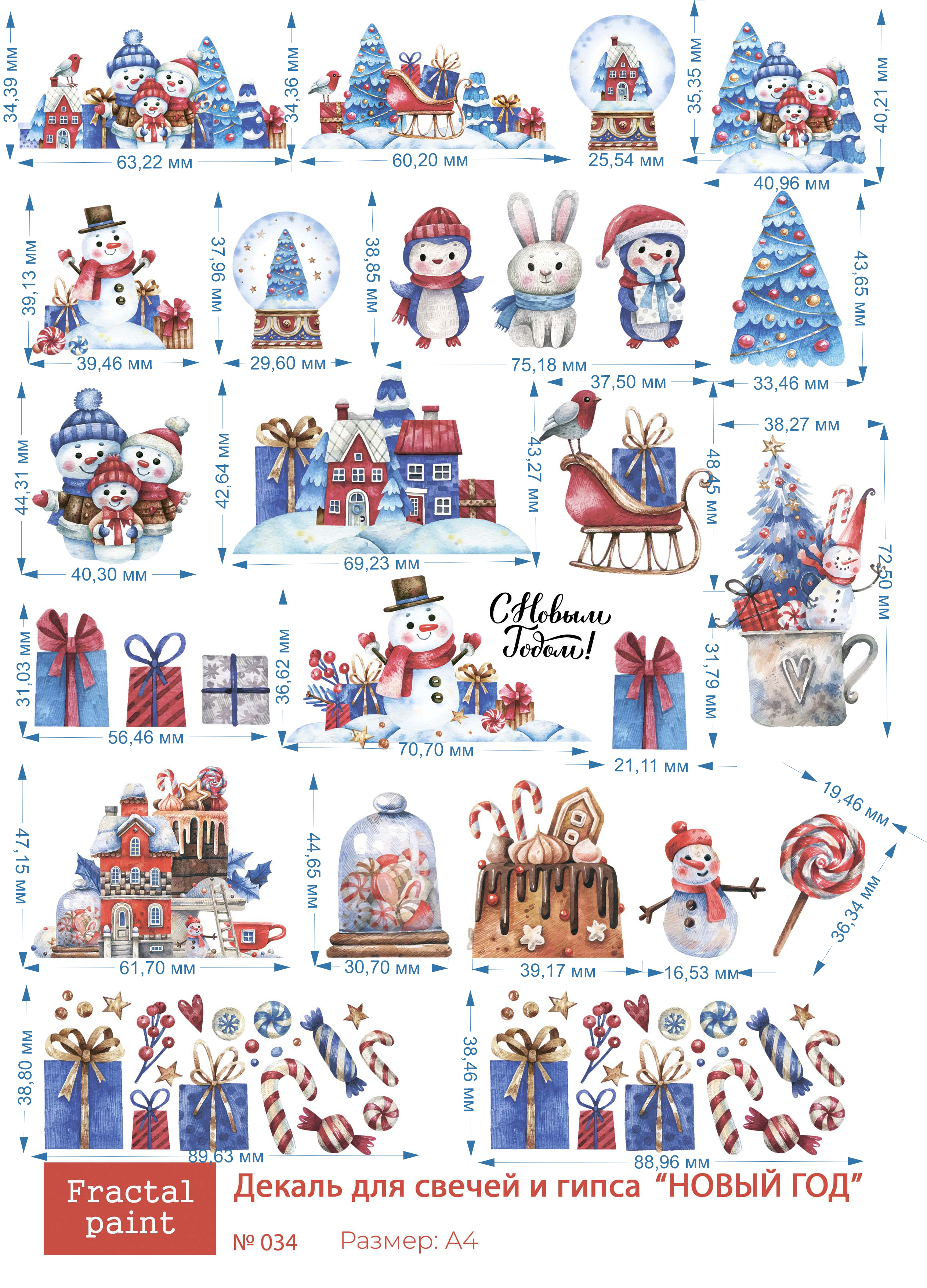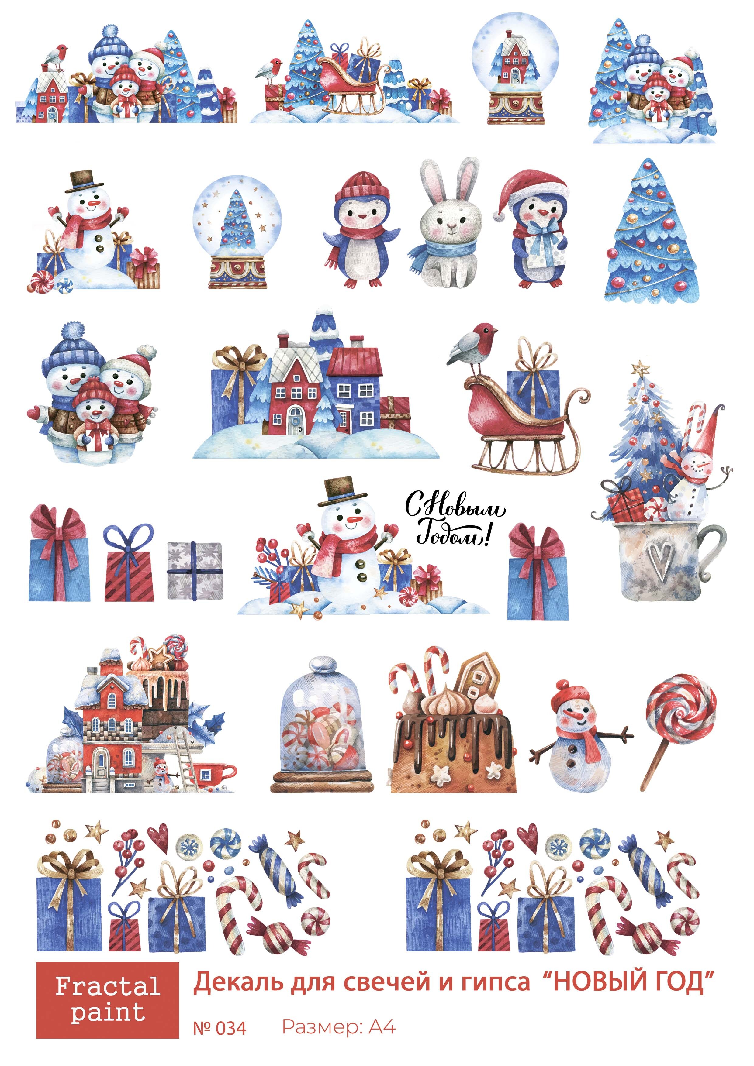 Трансфер переводной - декаль для свечей и гипса новый год 034