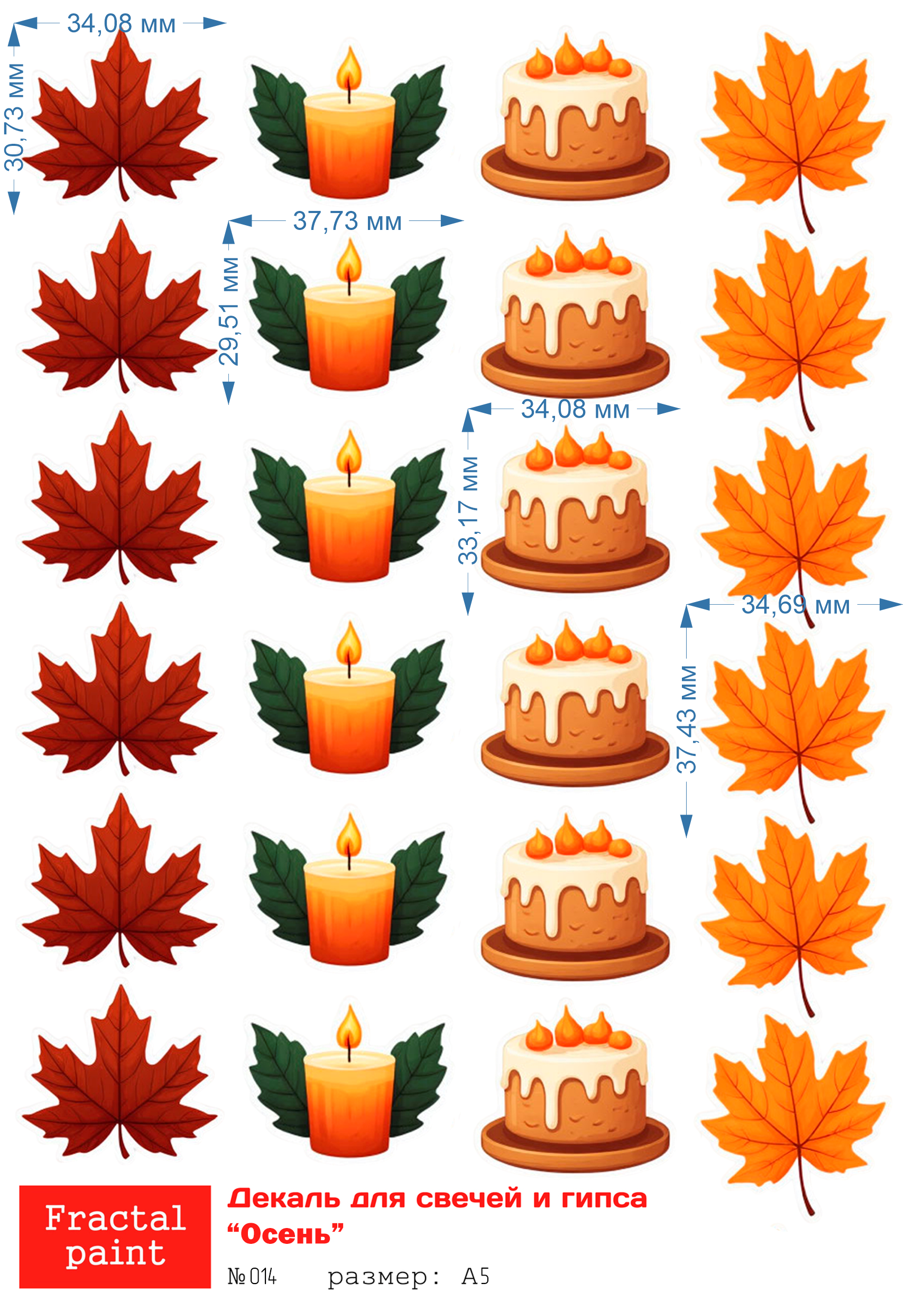 Трансфер переводной - декаль для свечей и гипса осень 014 А5