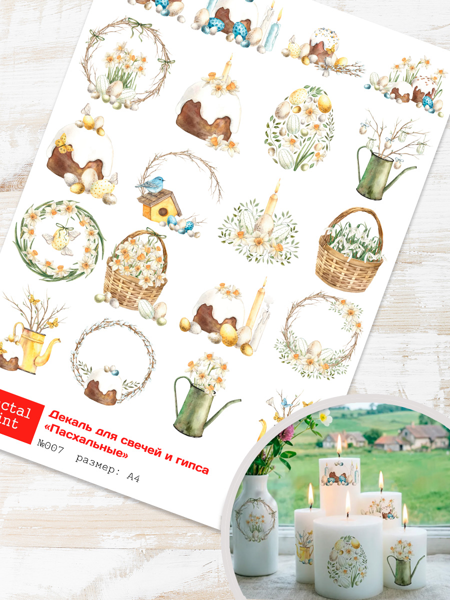 Трансфер переводной - декаль для свечей и гипса пасхальный 007