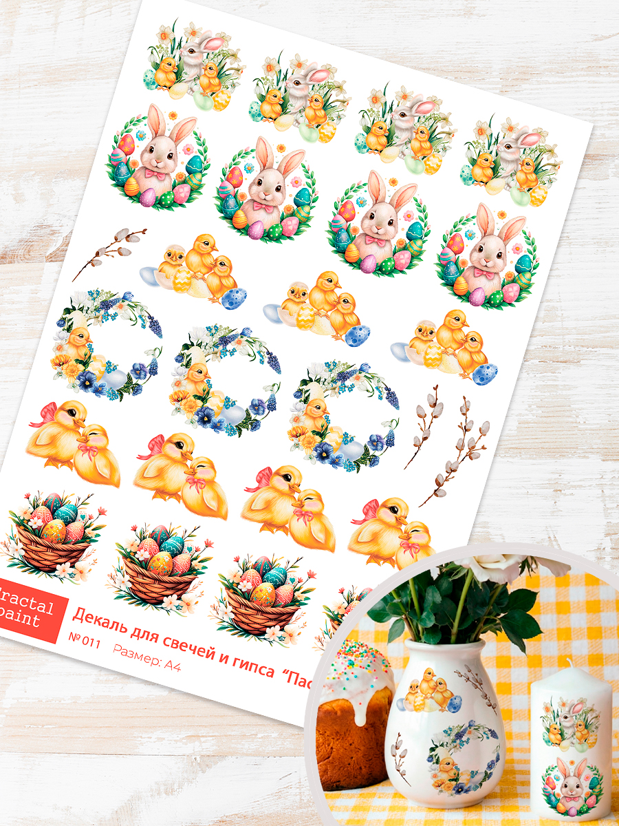 Трансфер переводной - декаль для свечей и гипса пасхальный 011