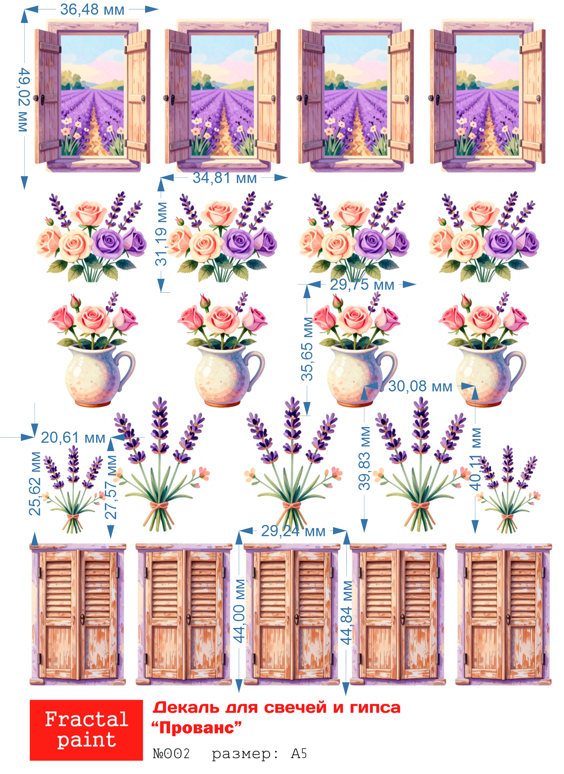 Трансфер переводной - декаль для свечей и гипса прованс 002 А5