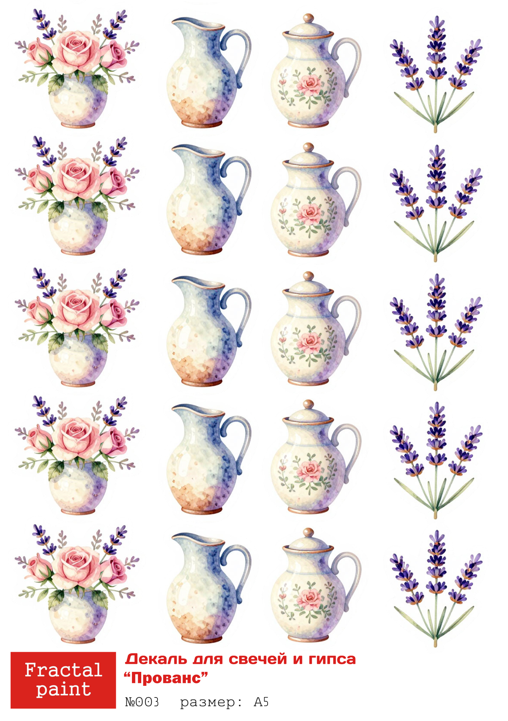 Трансфер переводной - декаль для свечей и гипса прованс 003 А5