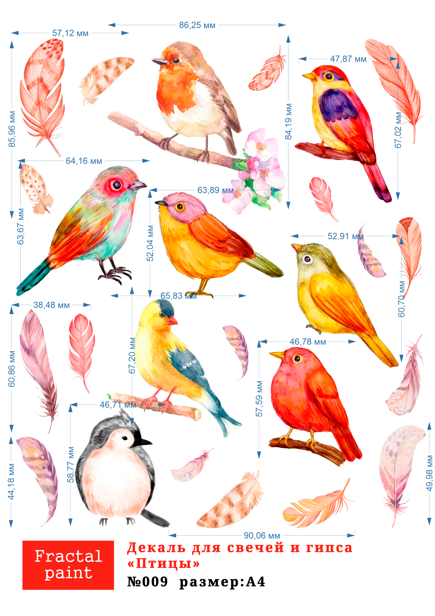 Трансфер переводной - декаль для свечей и гипса птицы 009