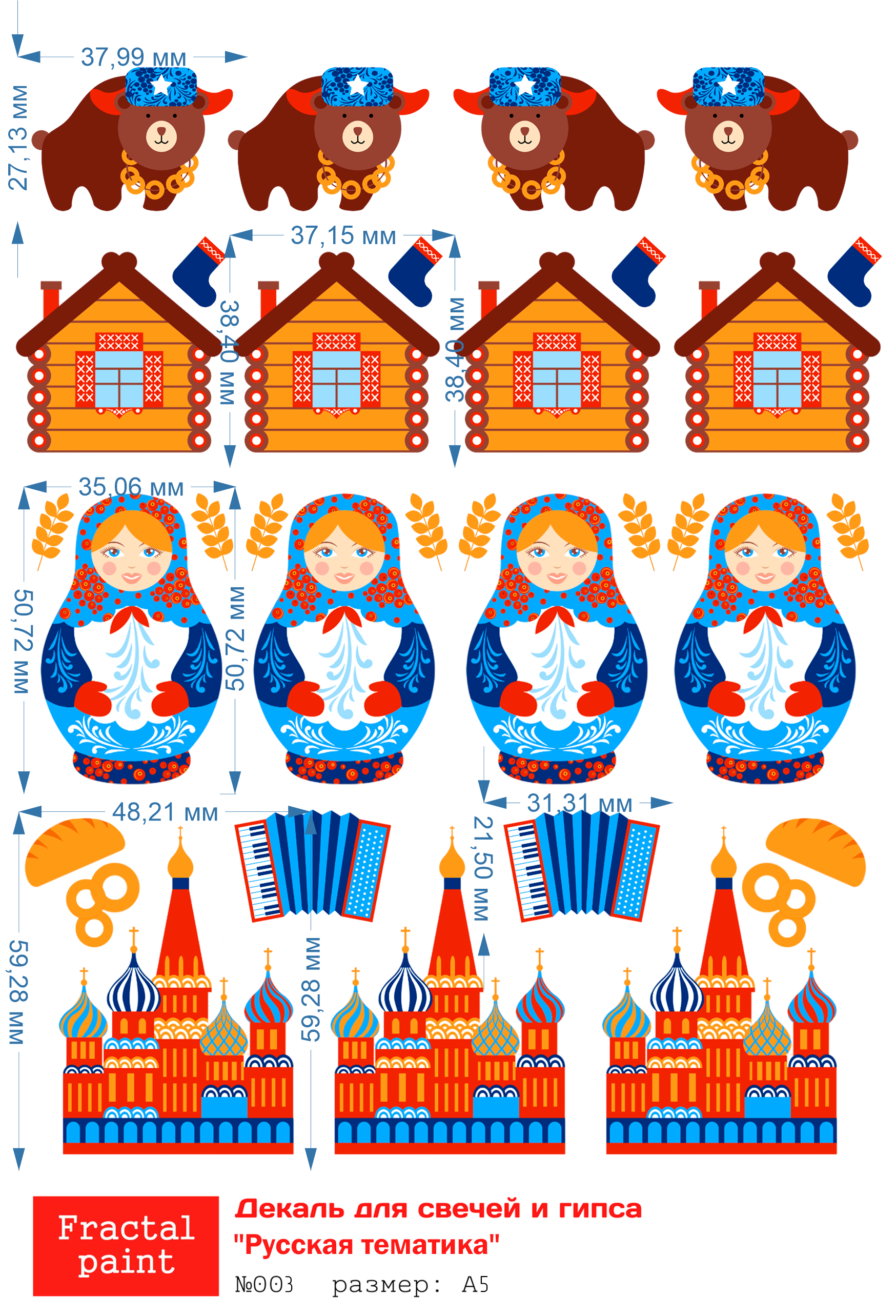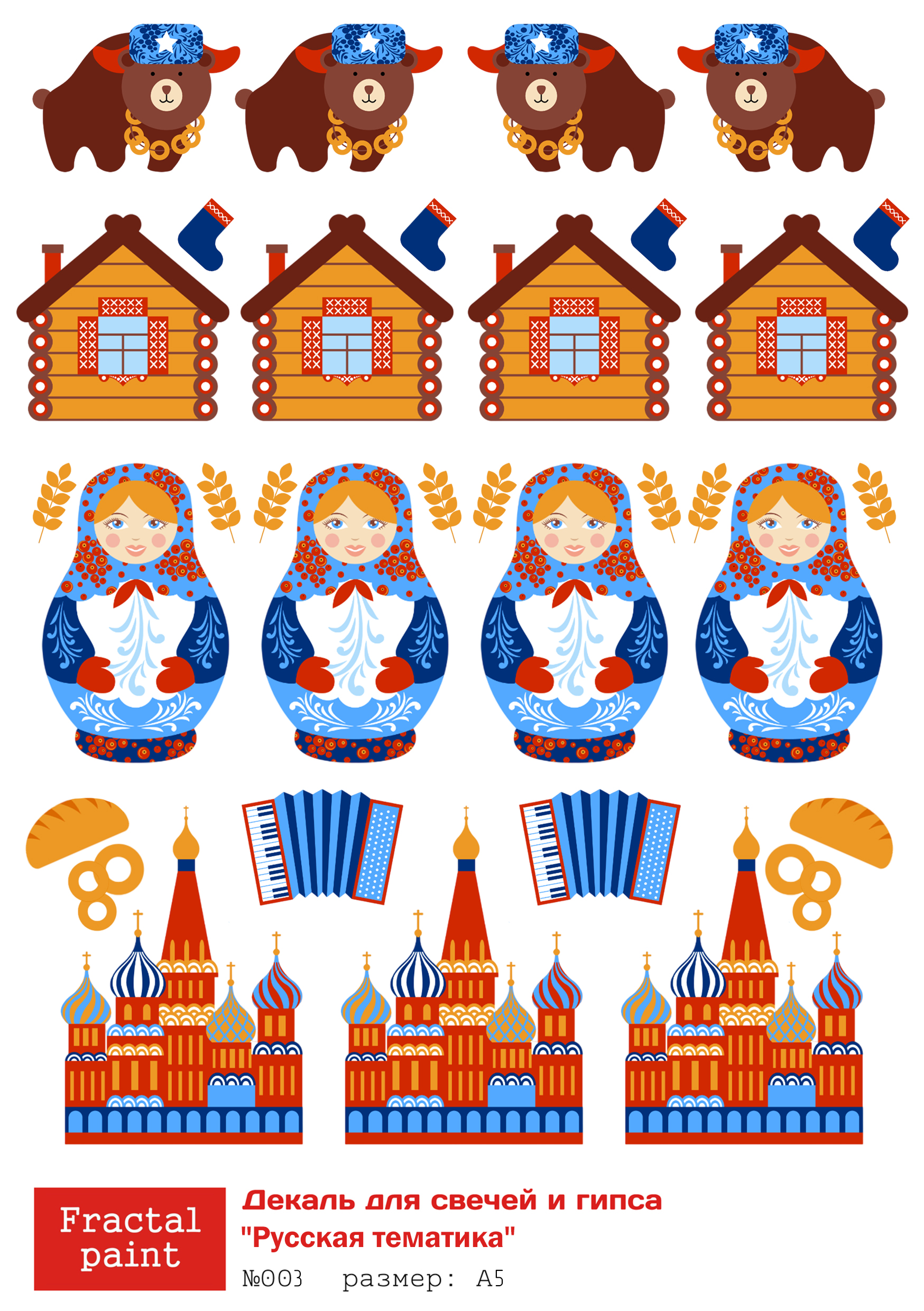 Трансфер переводной - декаль для свечей и гипса русская тематика 003 А5
