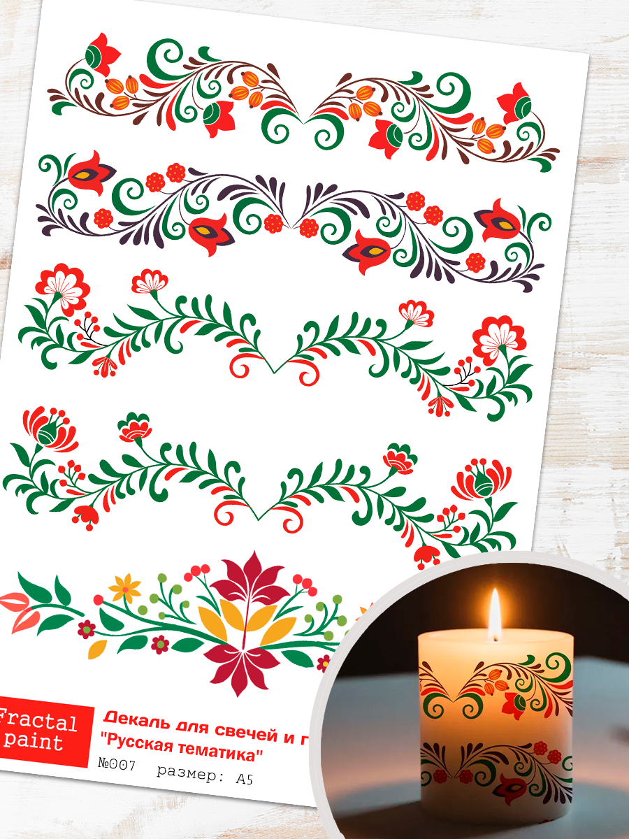 Трансфер переводной - декаль для свечей и гипса русская тематика 007 А5