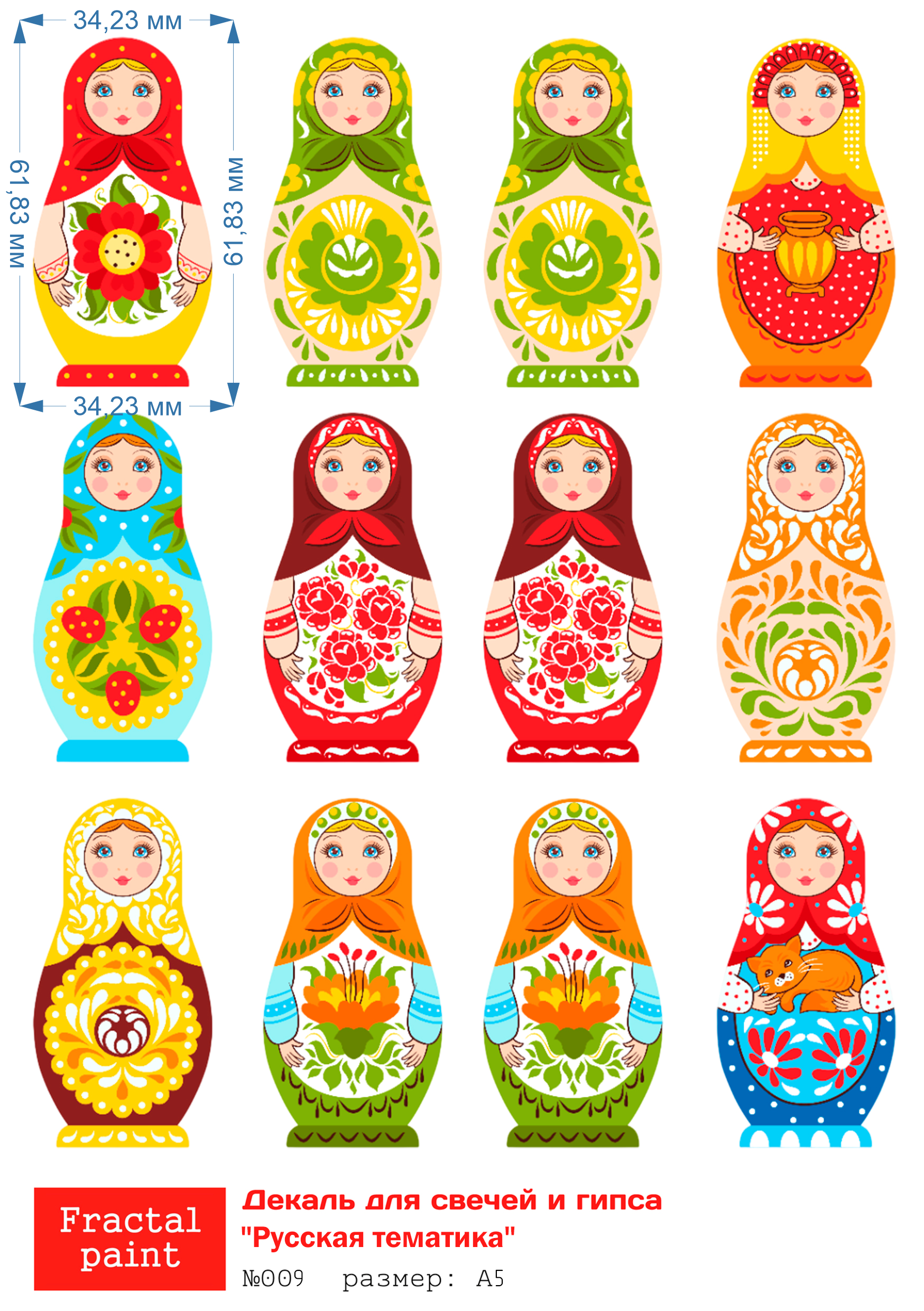 Трансфер переводной - декаль для свечей и гипса русская тематика 009 А5