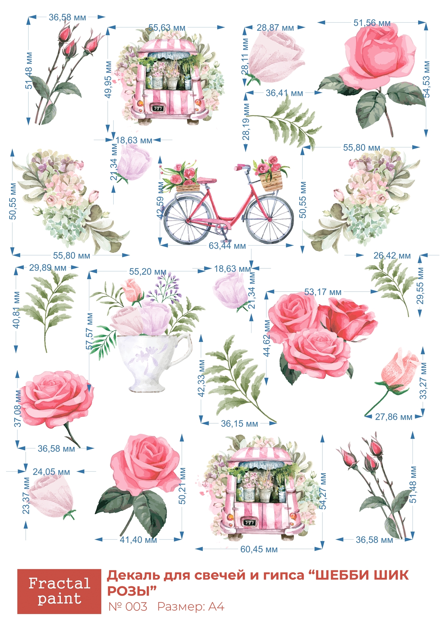 Трансфер переводной - декаль для свечей и гипса шебби шик розы 003