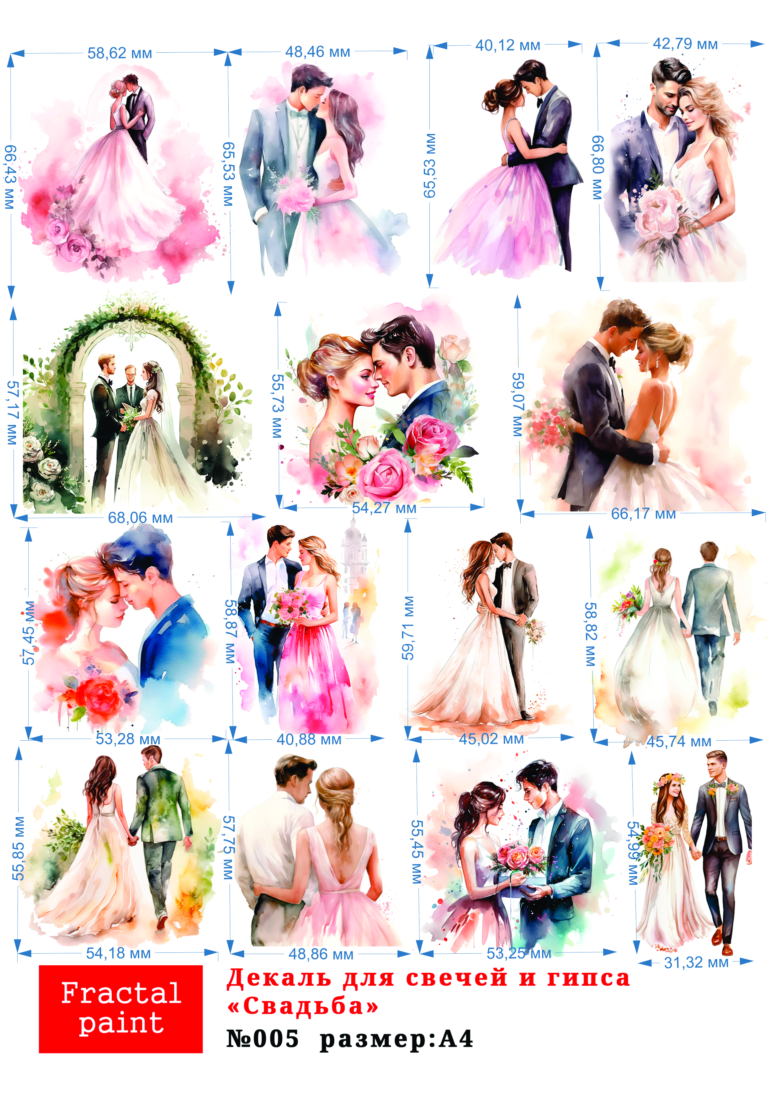 Трансфер переводной - декаль для свечей и гипса свадьба 005
