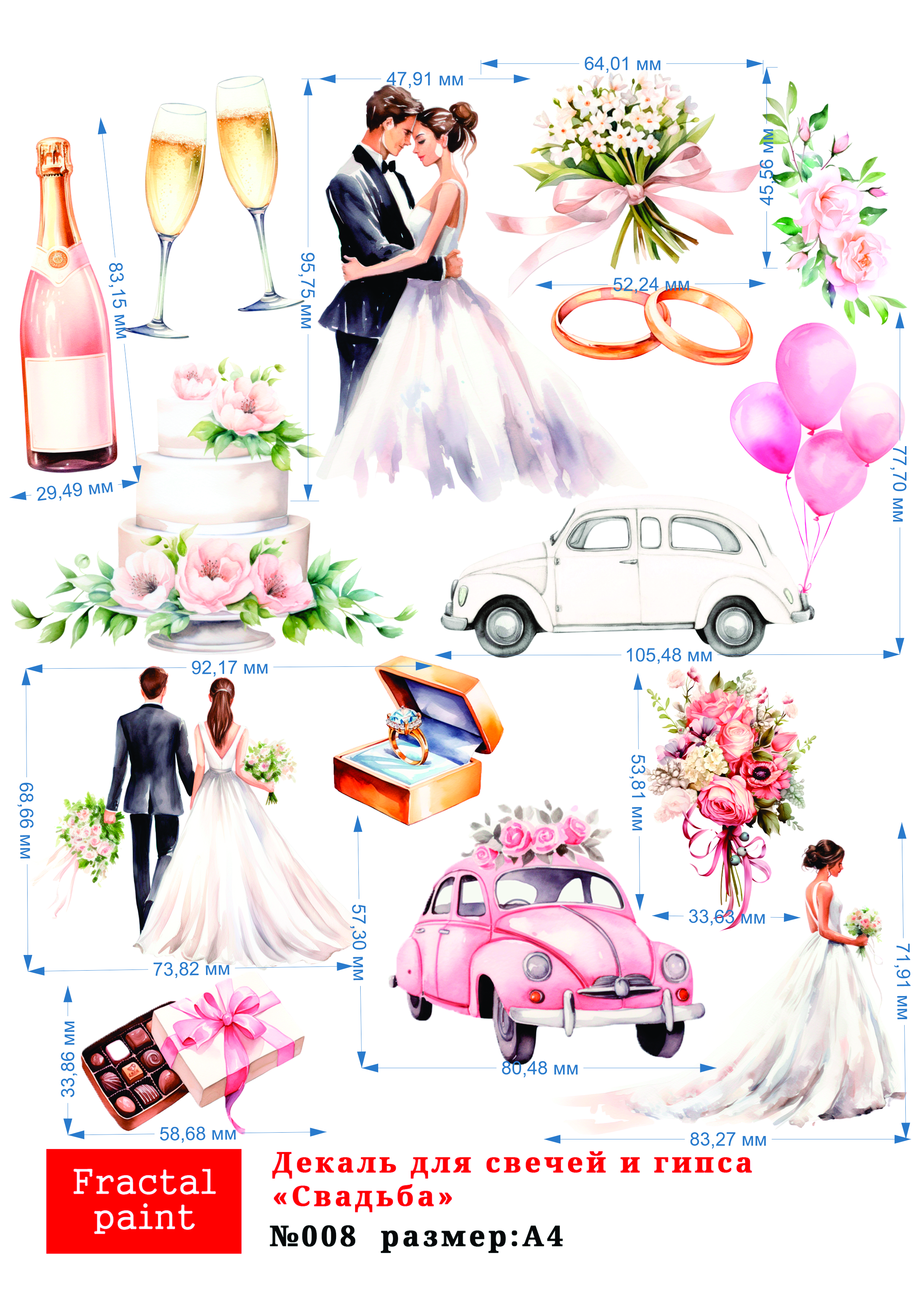 Трансфер переводной - декаль для свечей и гипса свадьба 008