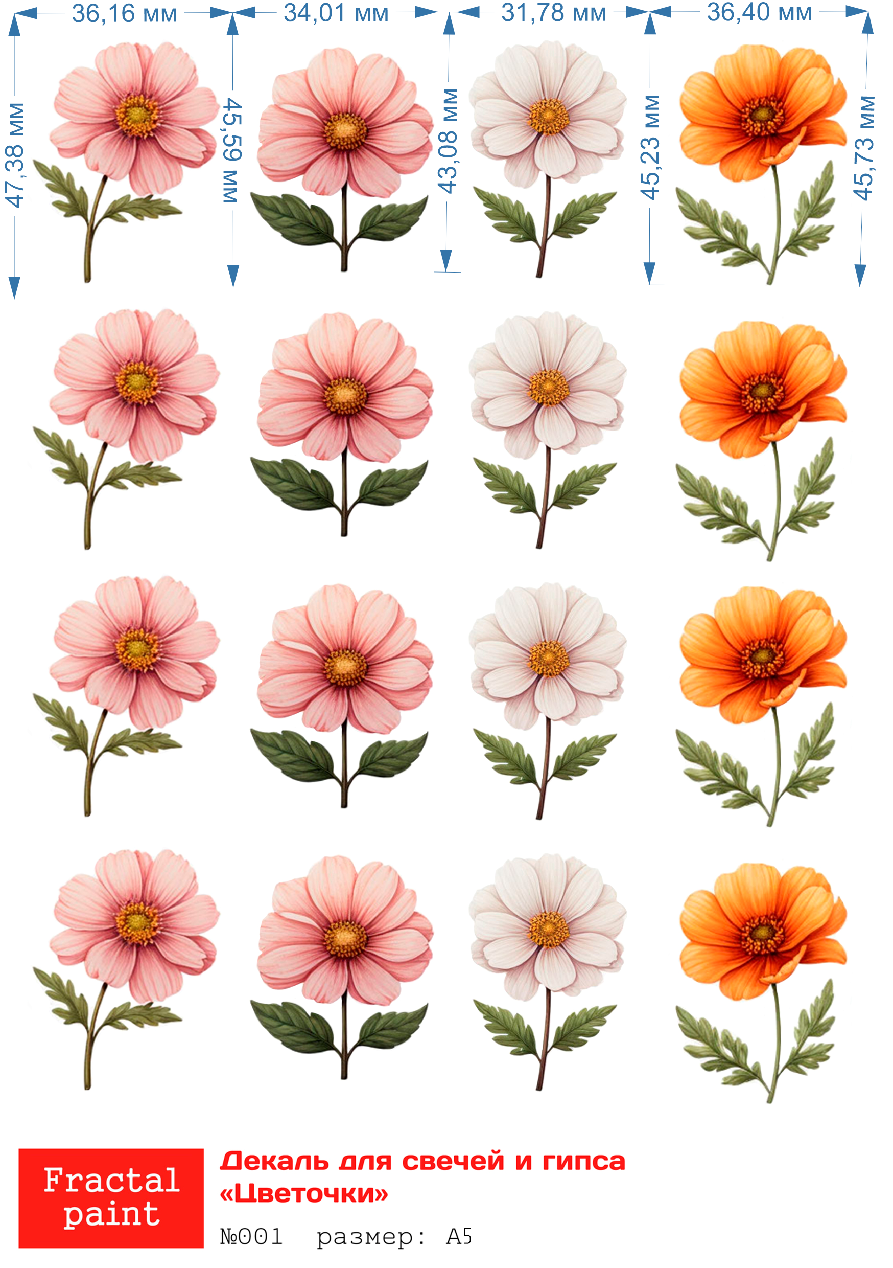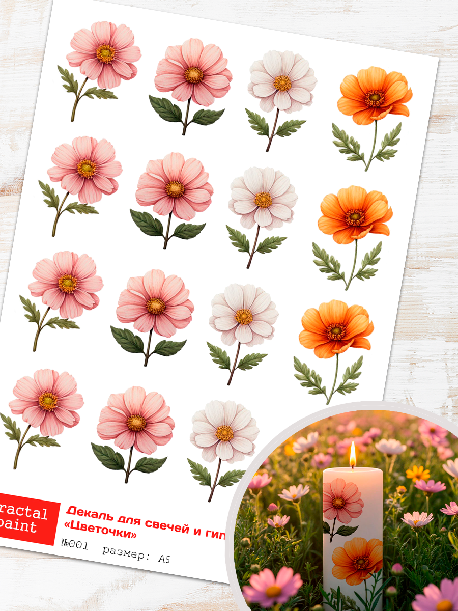 Трансфер переводной - декаль для свечей и гипса цветочки 001 А5