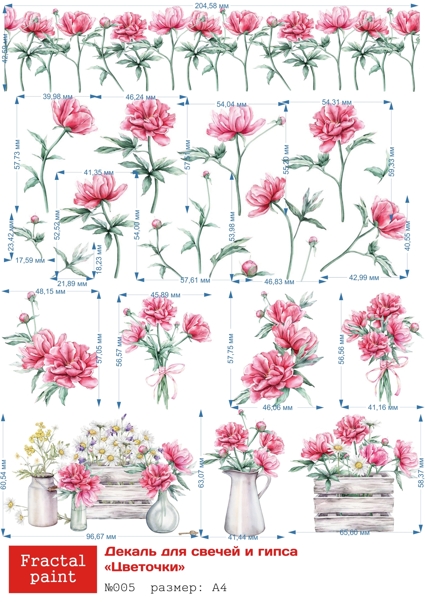 Трансфер переводной - декаль для свечей и гипса цветочки 005