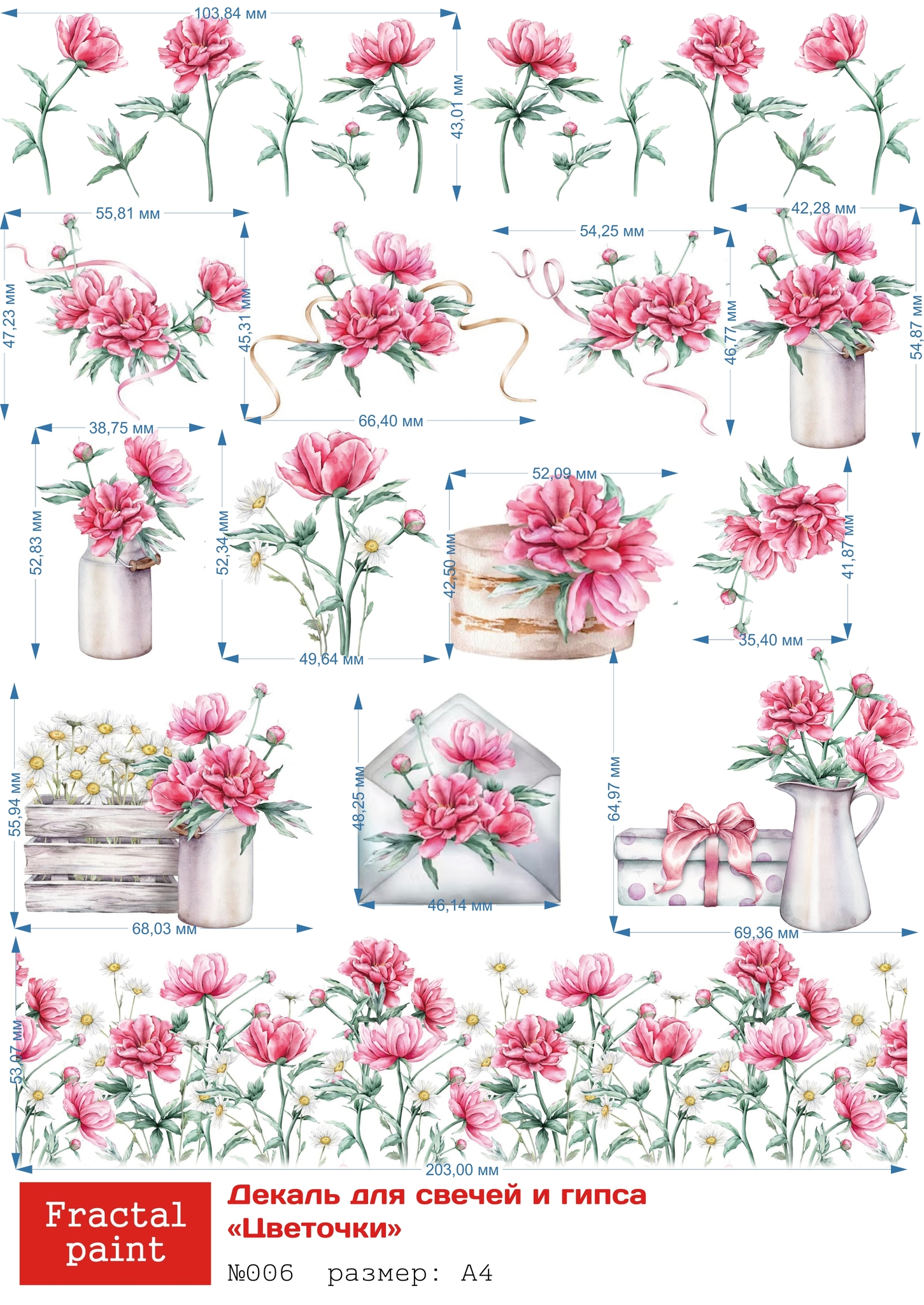 Трансфер переводной - декаль для свечей и гипса цветочки 006