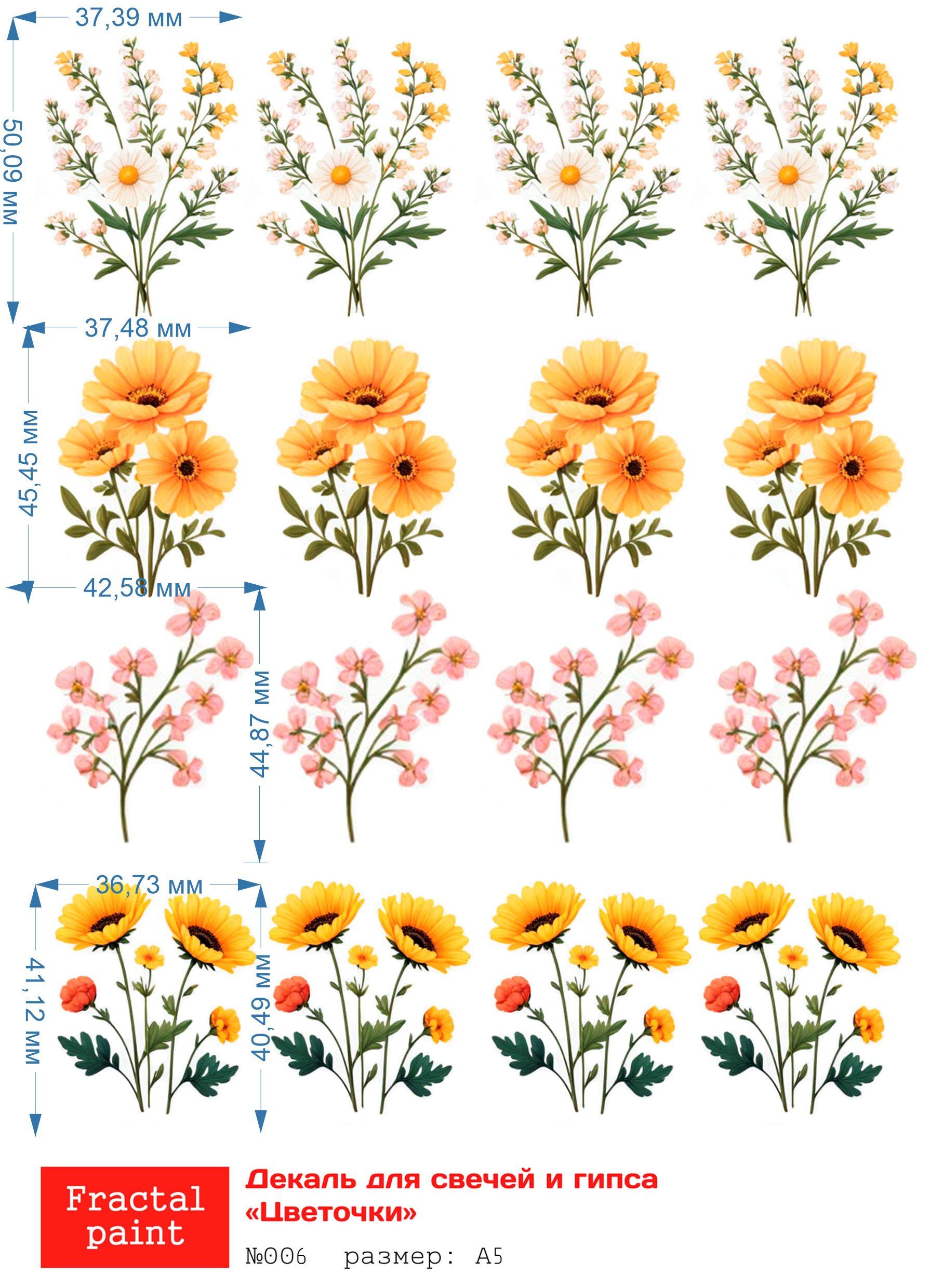 Трансфер переводной - декаль для свечей и гипса цветочки 006 А5