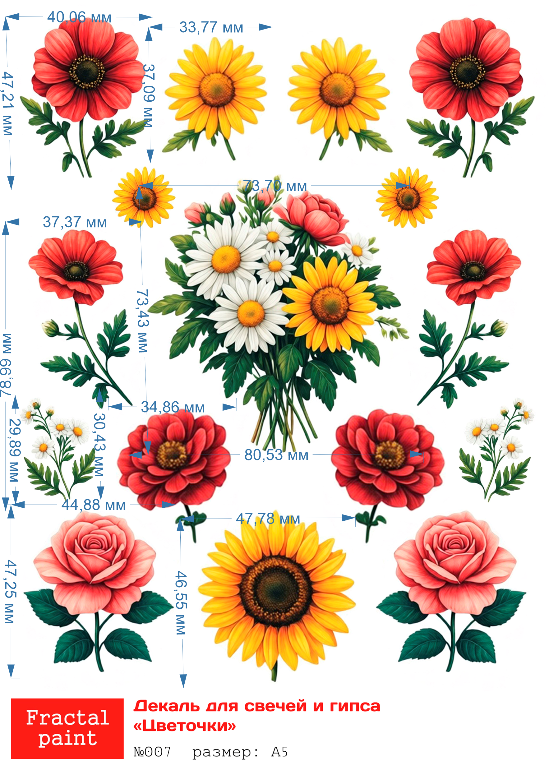 Трансфер переводной - декаль для свечей и гипса цветочки 007 А5