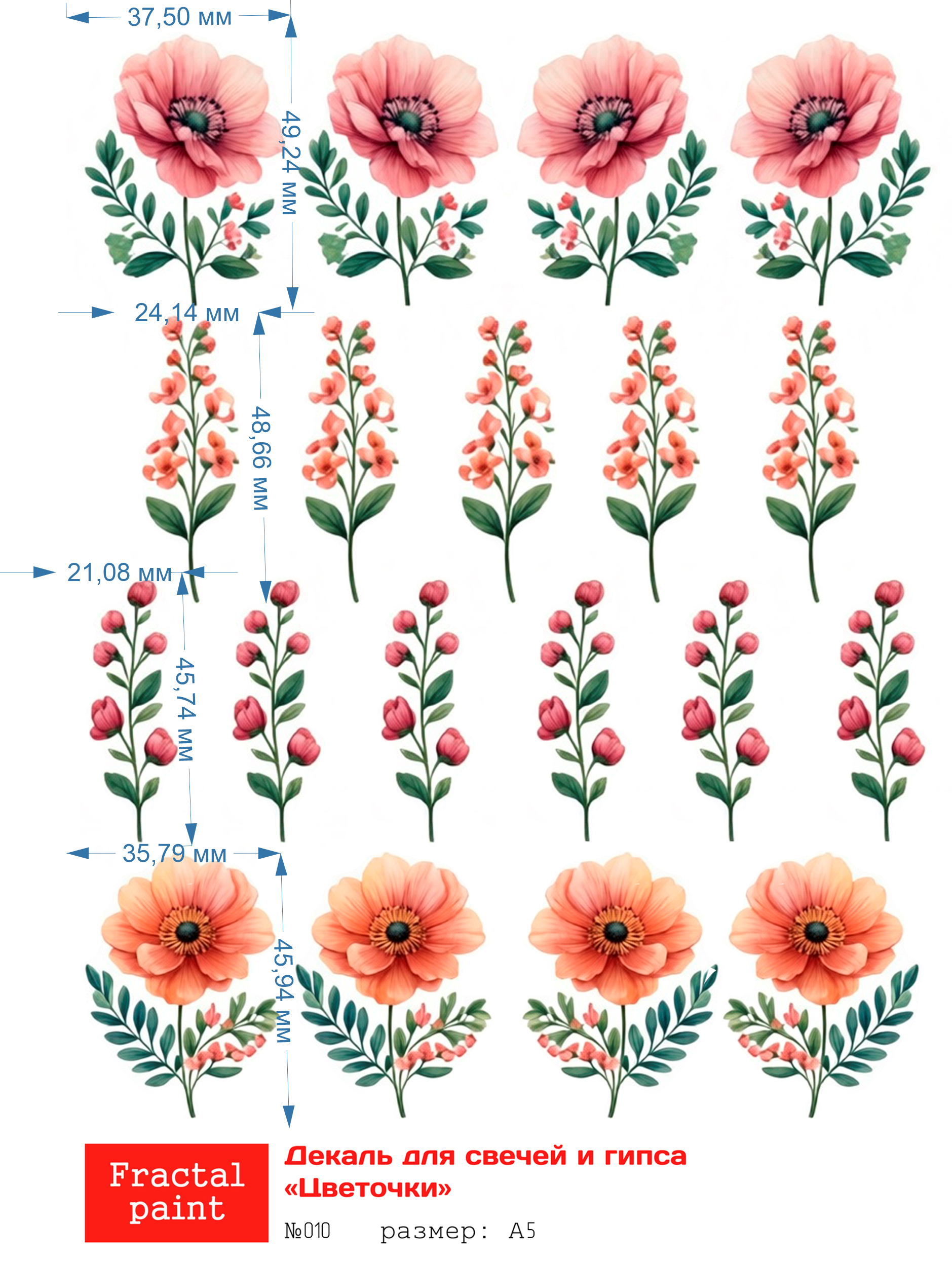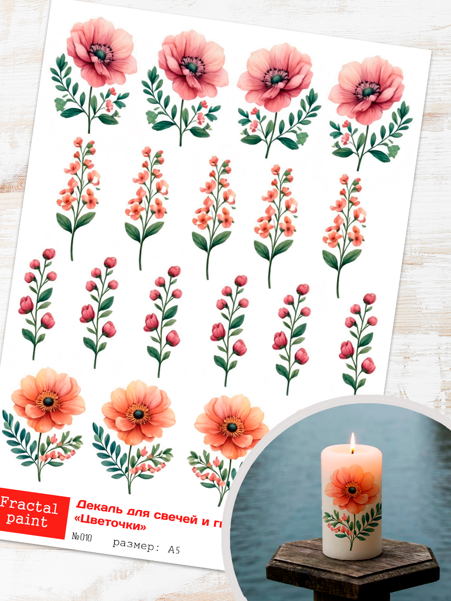 Трансфер переводной - декаль для свечей и гипса цветочки 010 А5