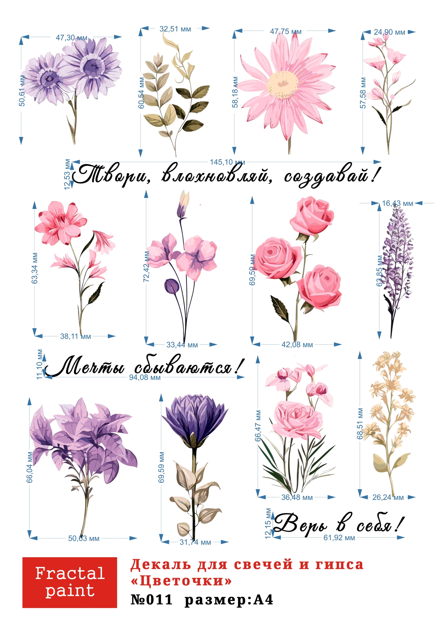 Трансфер переводной - декаль для свечей и гипса цветочки 011
