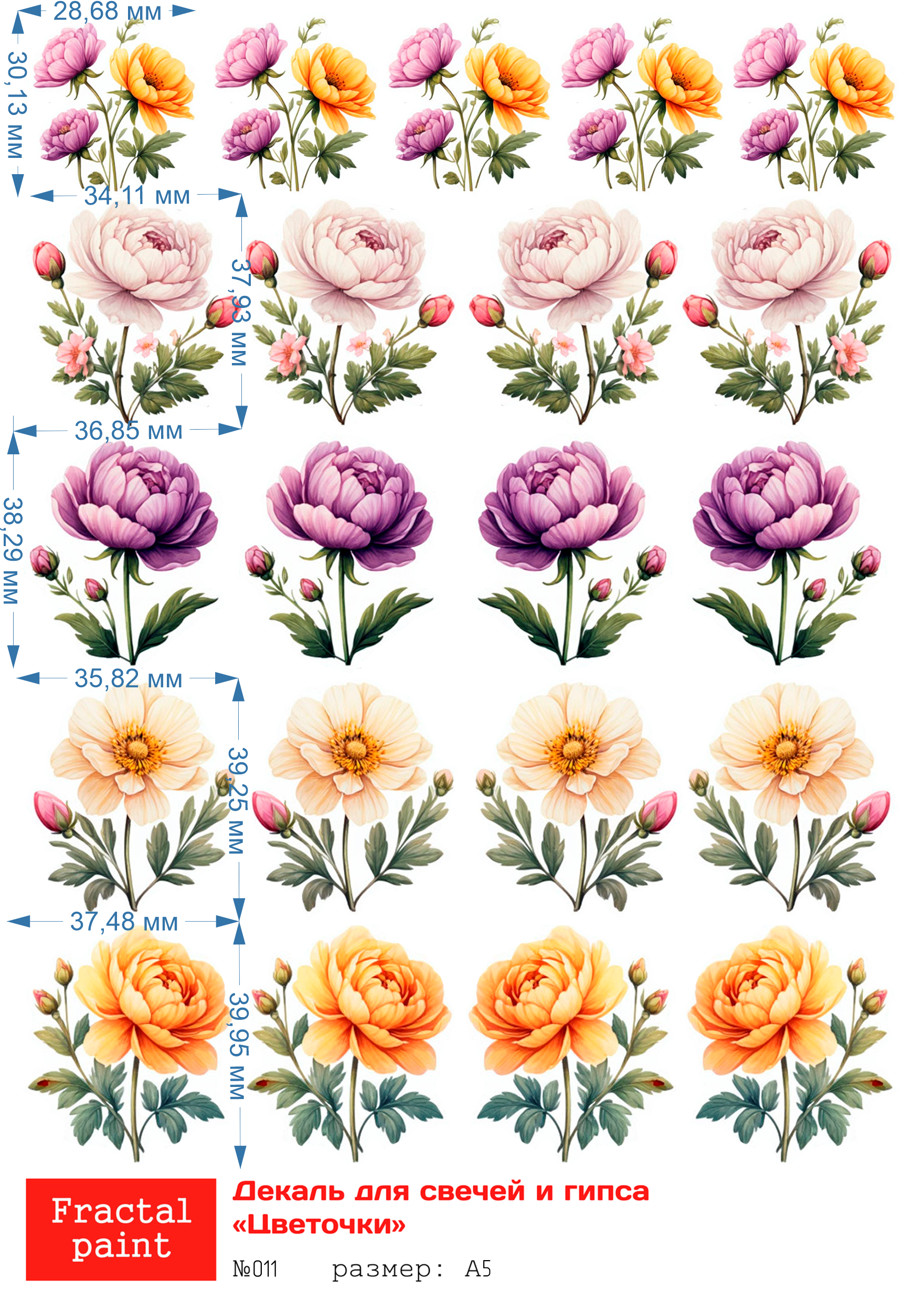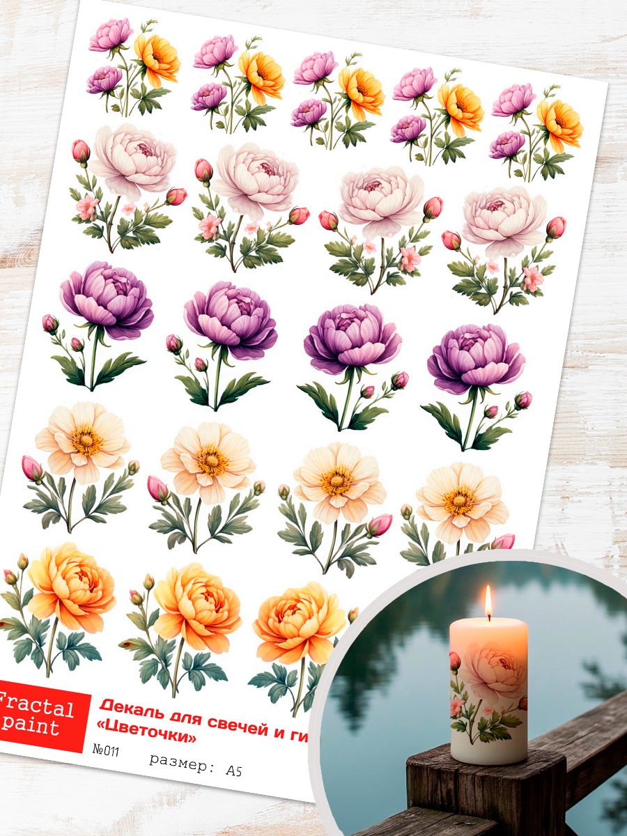 Трансфер переводной - декаль для свечей и гипса цветочки 011 А5