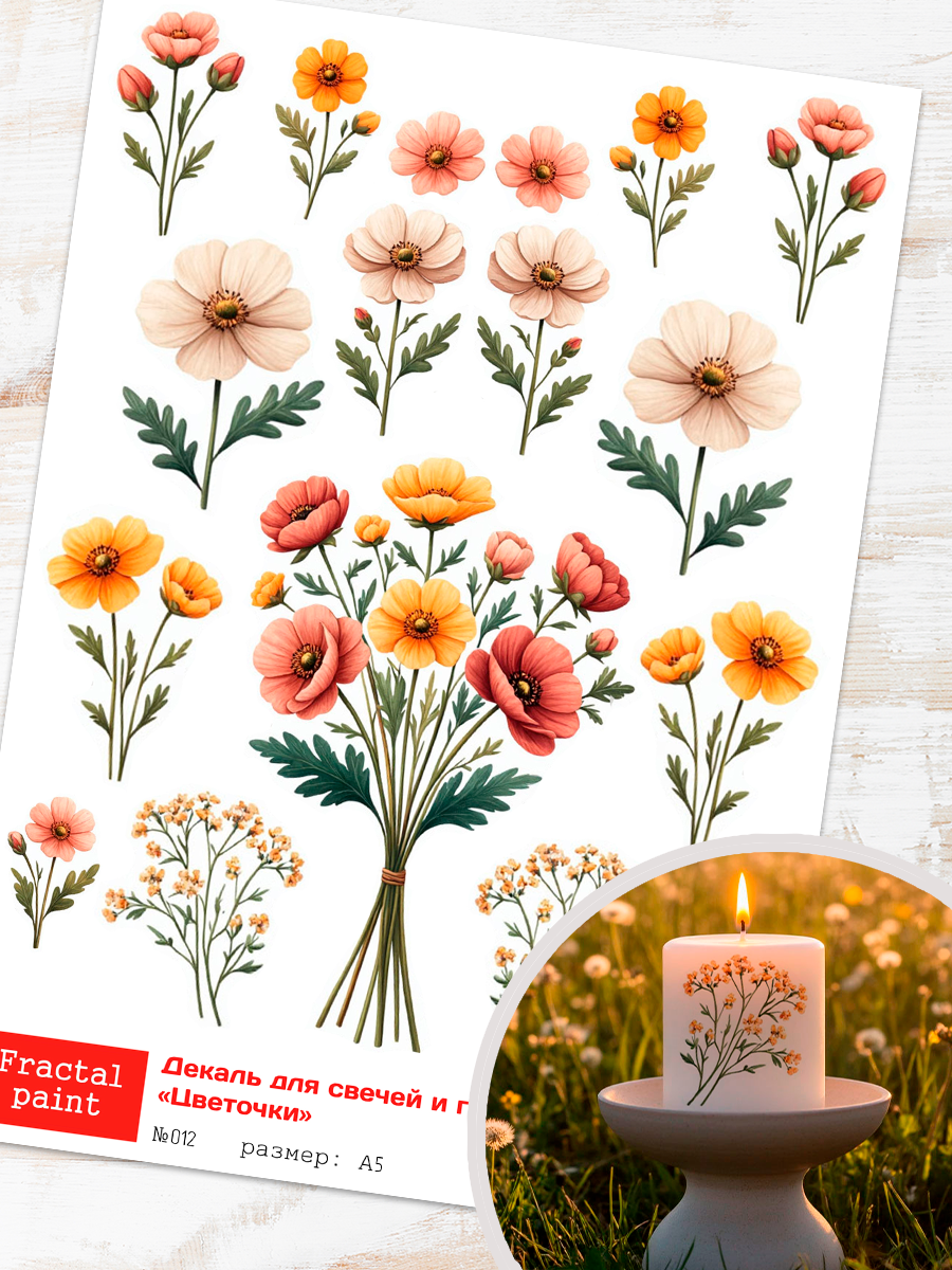 Трансфер переводной - декаль для свечей и гипса цветочки 012 А5