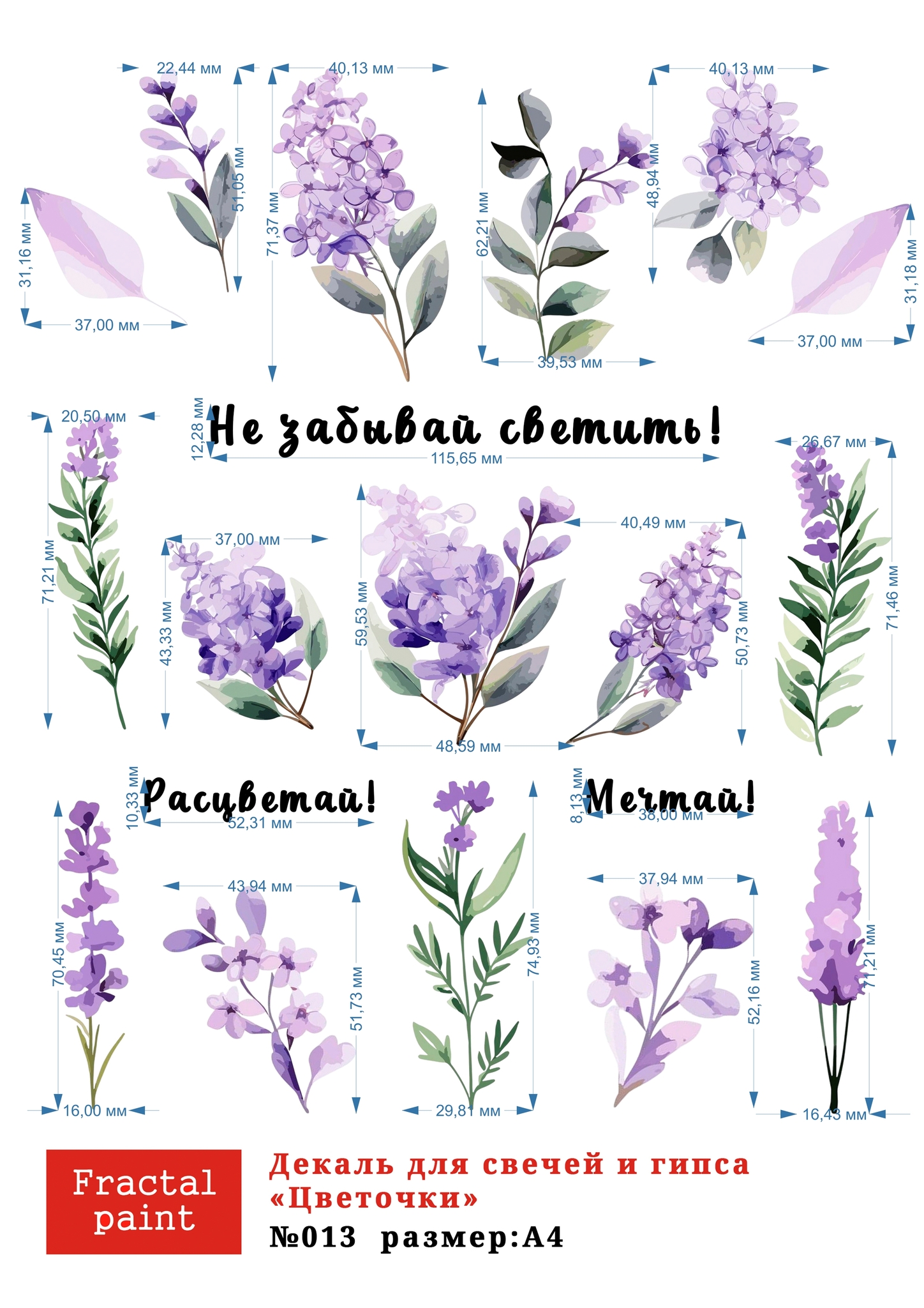 Трансфер переводной - декаль для свечей и гипса цветочки 013