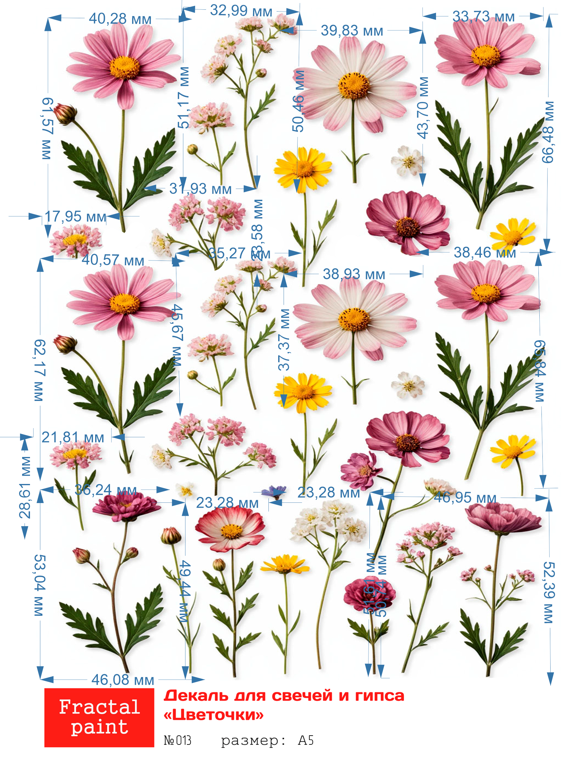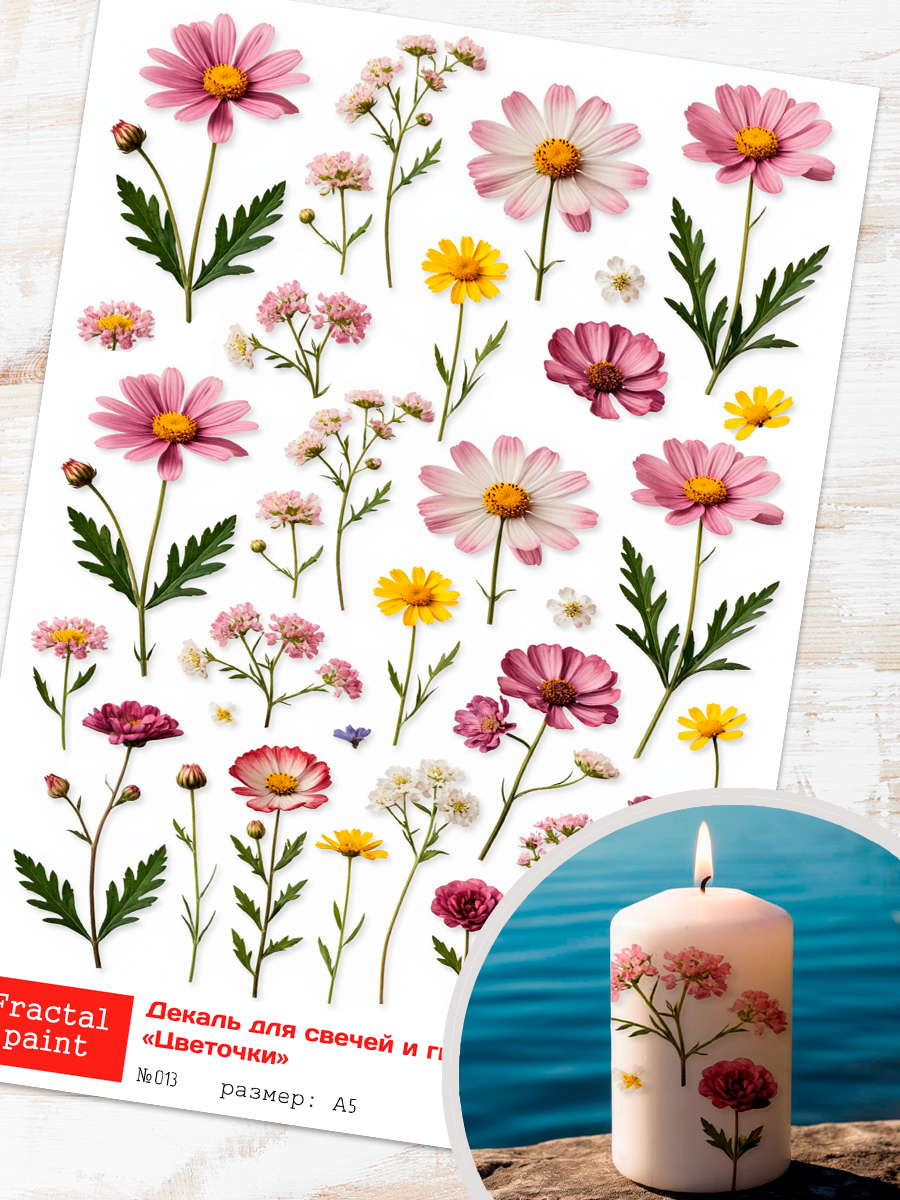 Трансфер переводной - декаль для свечей и гипса цветочки 013 А5