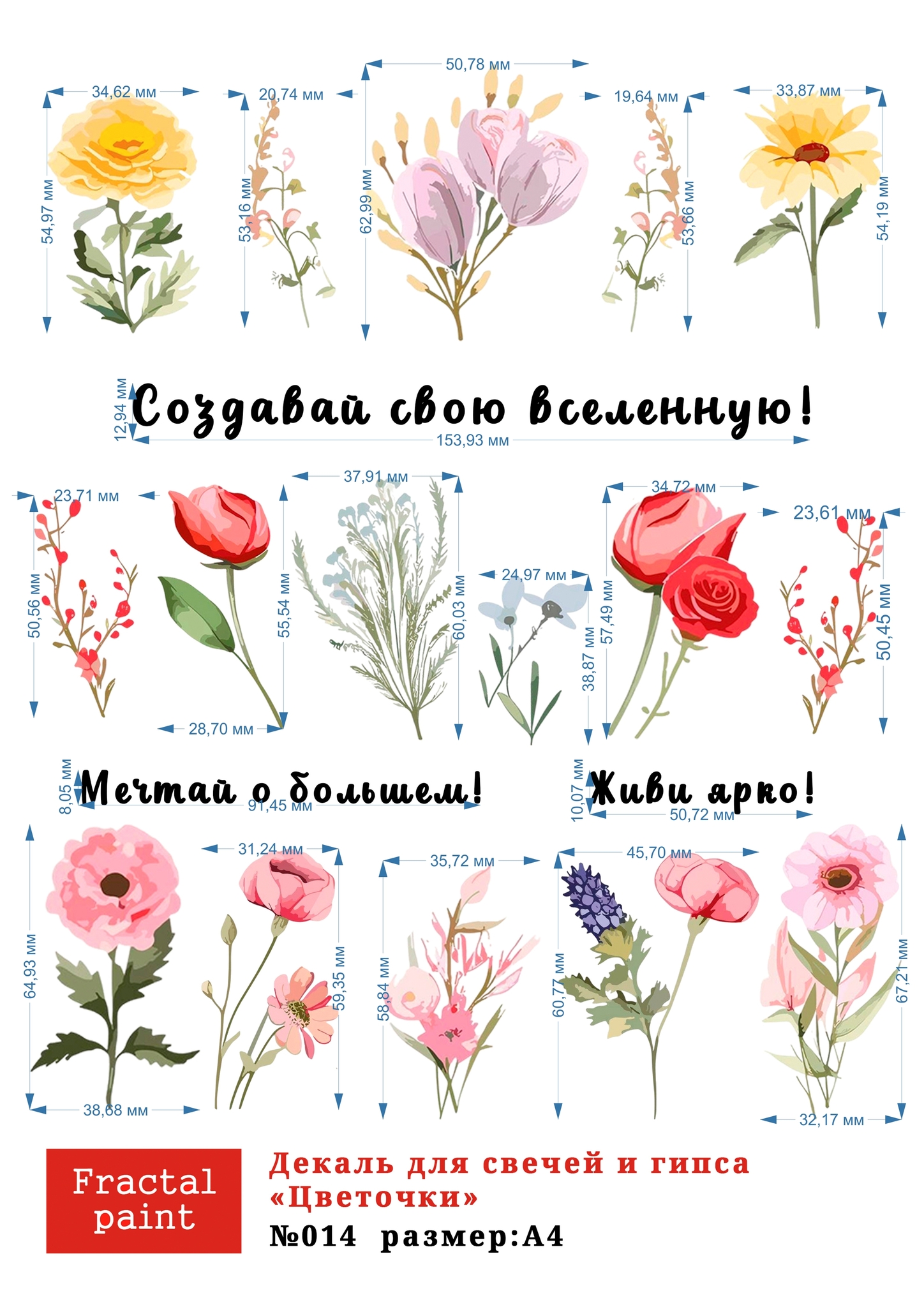 Трансфер переводной - декаль для свечей и гипса цветочки 014